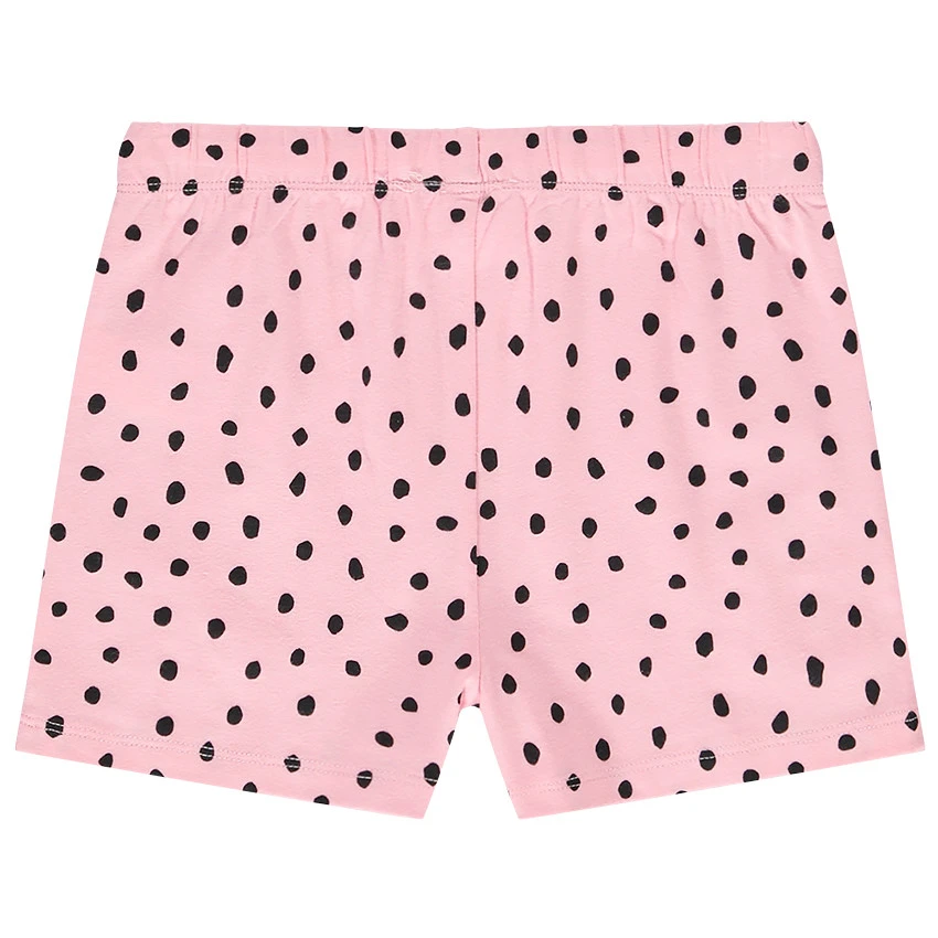 Short rose à pois. Taille élastiquée. Cordon de serrage.