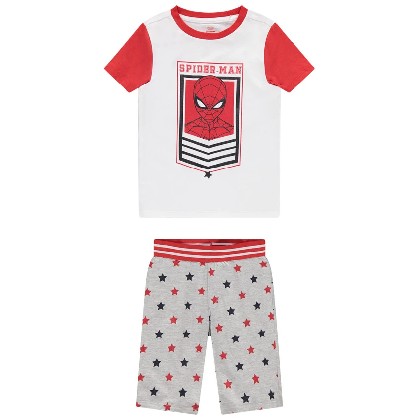T-shirt manches courtes contrastées. Encolure ronde en bord-côte. Print Spiderman sur le devant.