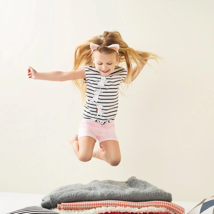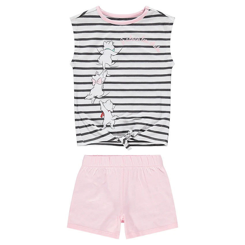 Tee-shirt sans manches en jersey. Rayures contrastées all-over. Encolure ronde en bord-côte. Aristochats printés sur le devant. Noeud sur le devant.