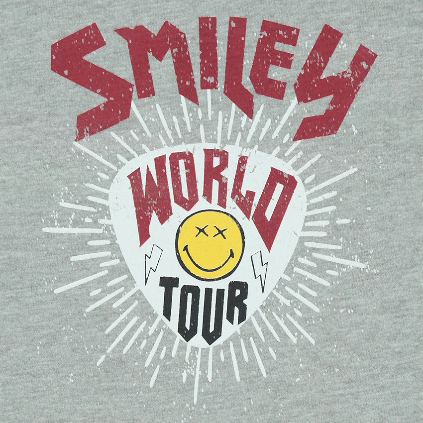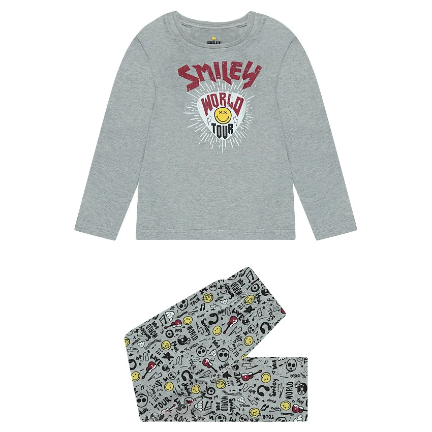 Haut de pyjama en jersey chiné. Encolure ronde en bord-côte. Print Smiley sur le devant. Dos uni.
