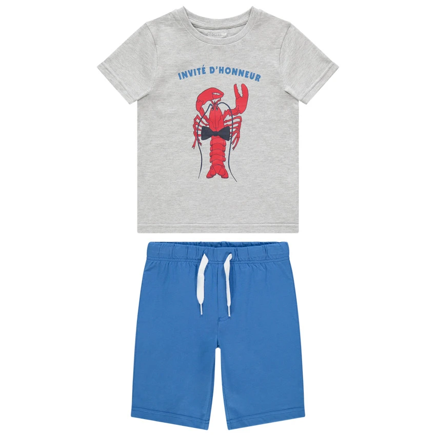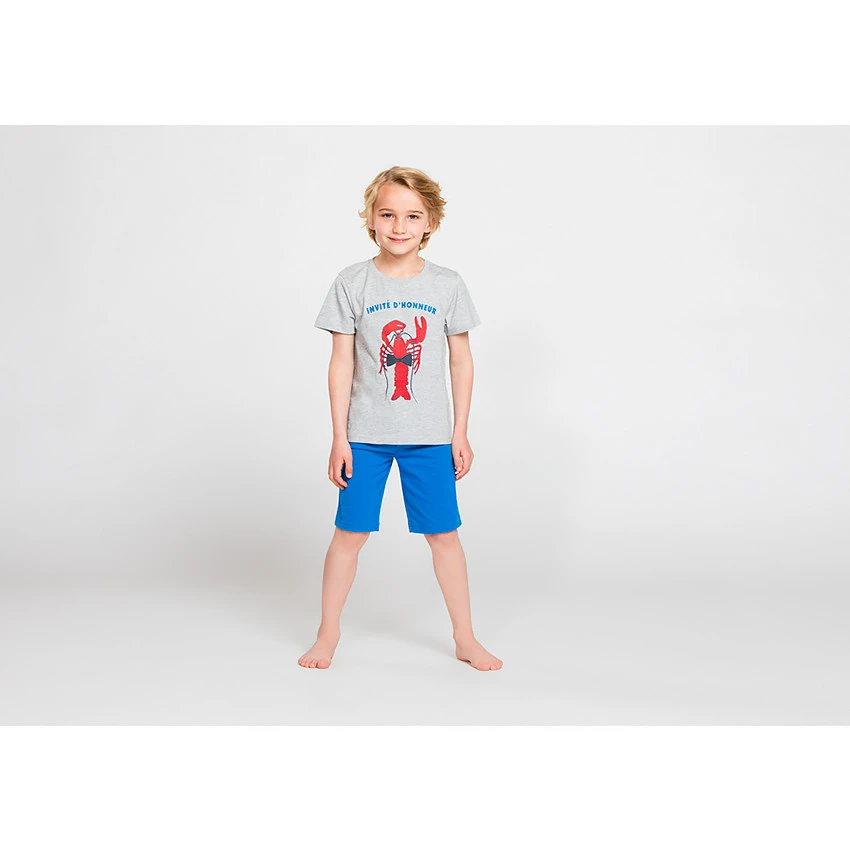 T-shirt manches courtes en jersey chiné. Encolure ronde en bord-côte. Homard avec message sur le devant.