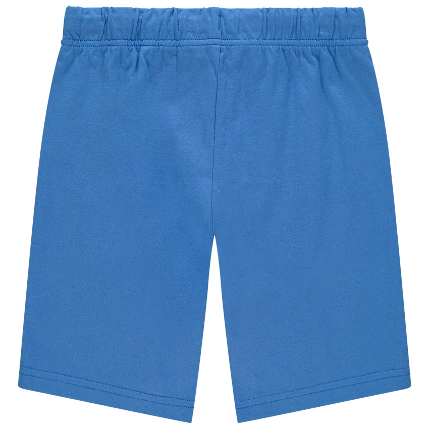 Bermuda en jersey uni bleu. Taille élastiquée à cordons de serrage.