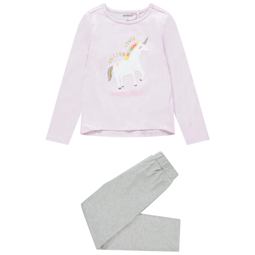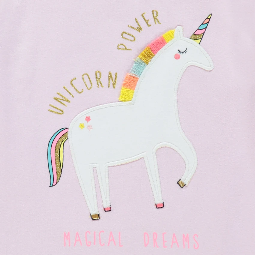 Haut de pyjama uni. Encolure ronde en bord-côte. Licorne printée devant.
