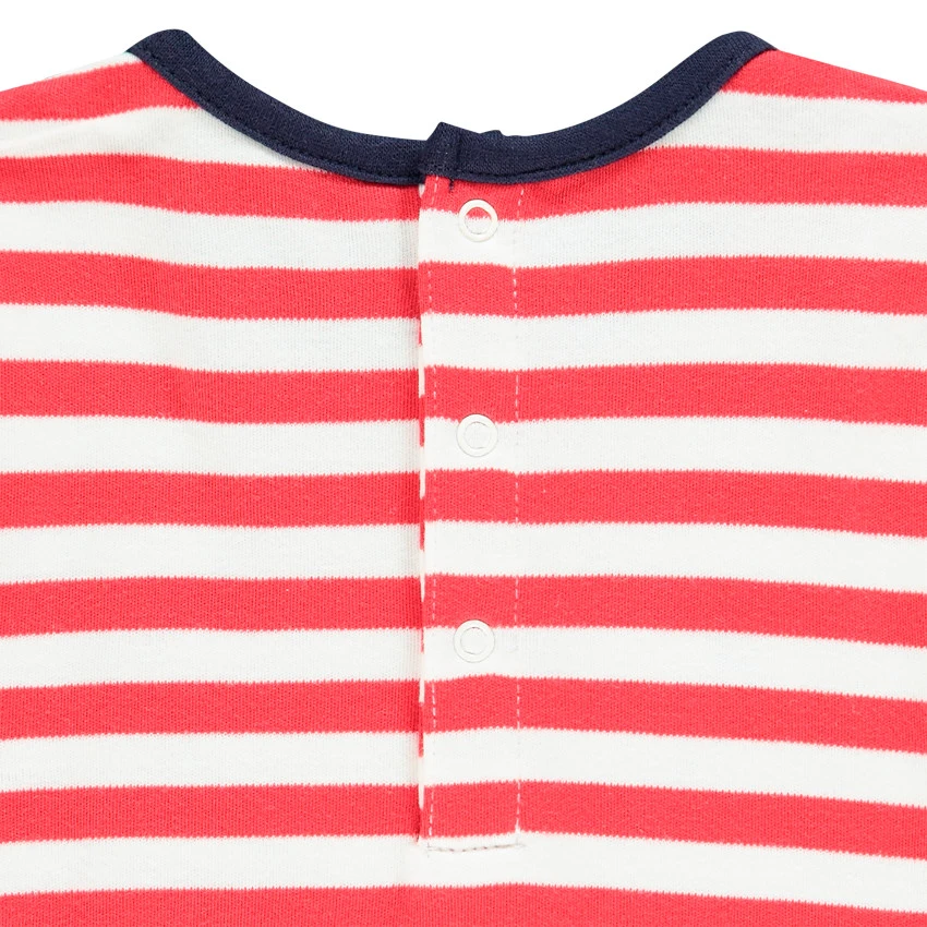 Haut de pyjama rayé en coton. Col rond contrasté. Logo Superman sur le devant. Ouverture pressionnée au dos pour l’enfiler facilement.