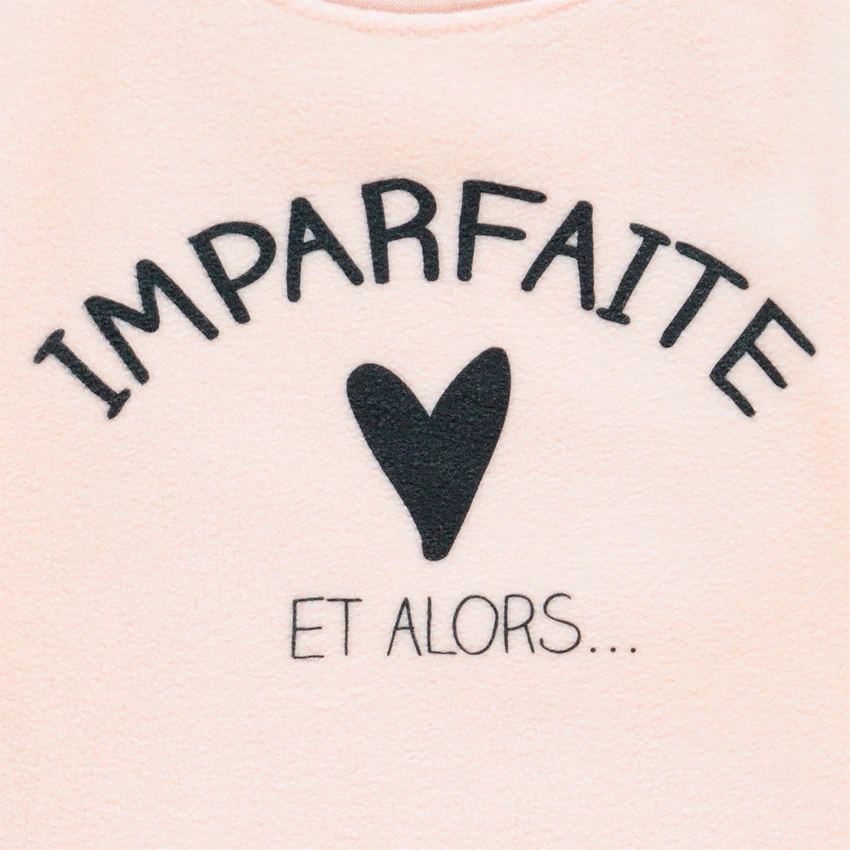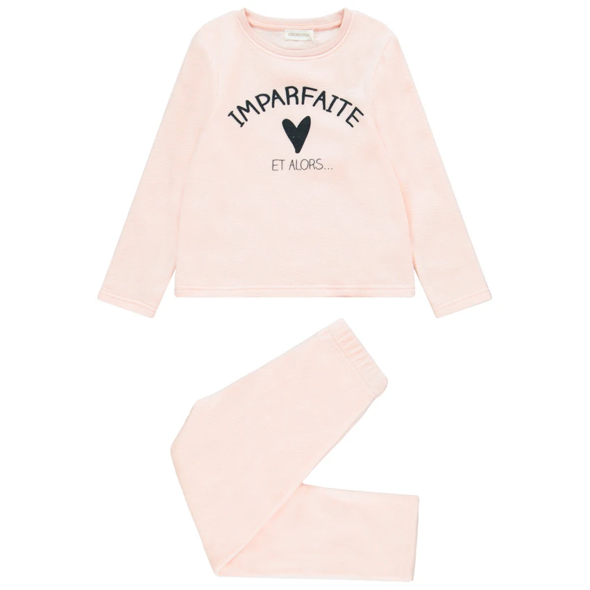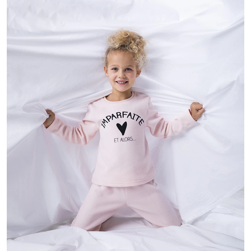 Pyjama en polaire rose pour enfant fille. Col en maille extensible. Message printé devant.
