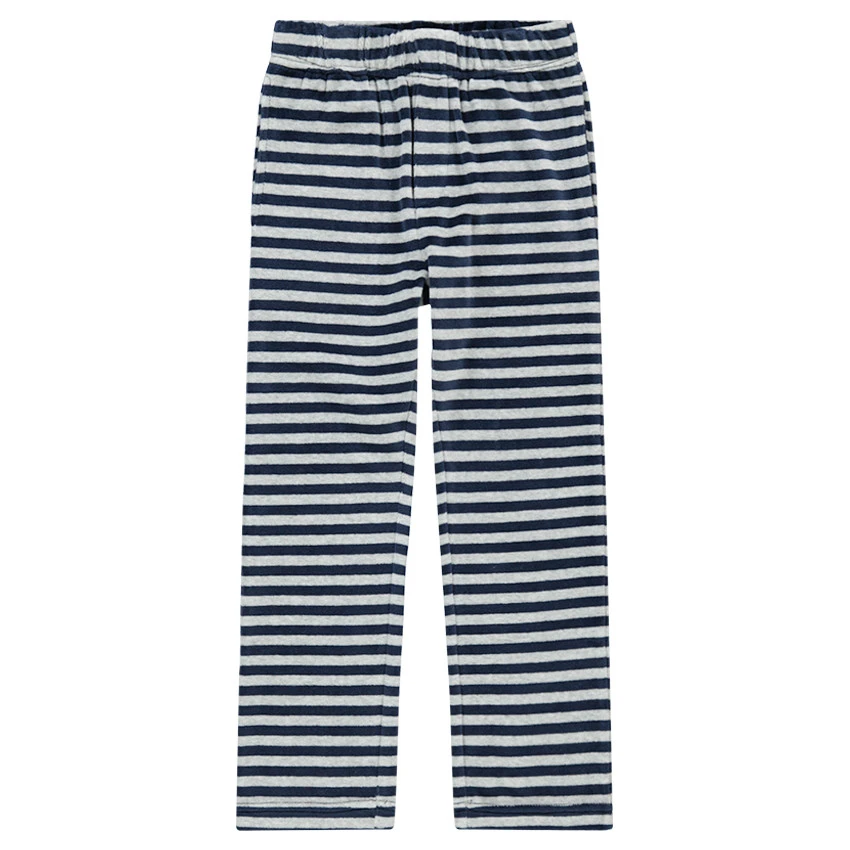 Pantalon de pyjama en velours rayé all-over. Taille élastiquée. 2 poches coupées devant. Coupe droite.