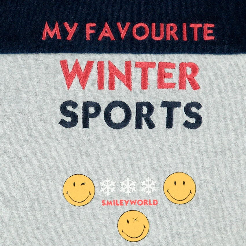 Haut de pyjama en velours bicolore pour enfant garçon. Encolure ronde en bord-côte. Inscriptions brodées sur le devant. Prints SmileyWorld.