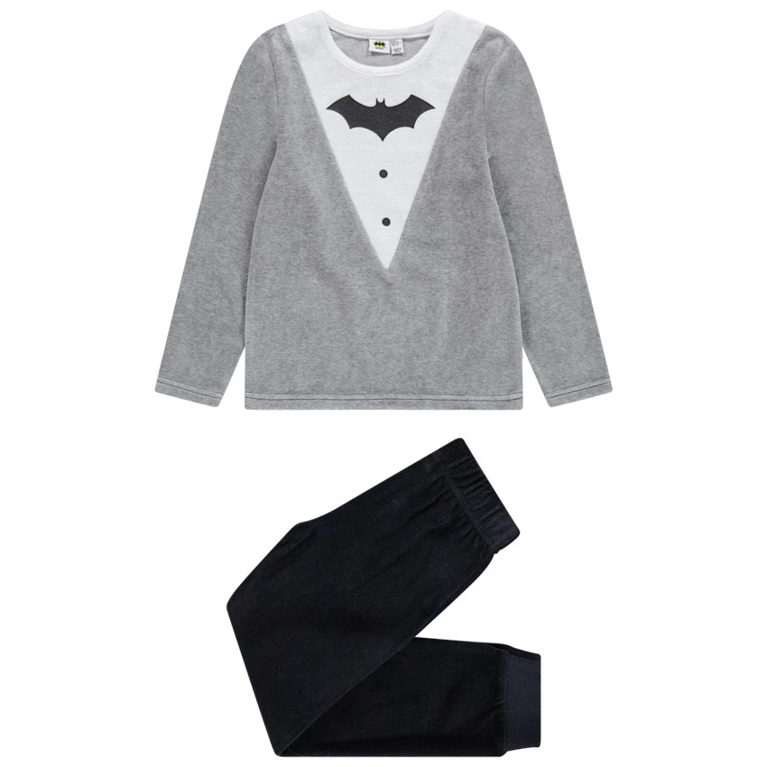 Haut de pyjama en velours effet costume. Encolure ronde. Print Batman sous le col.