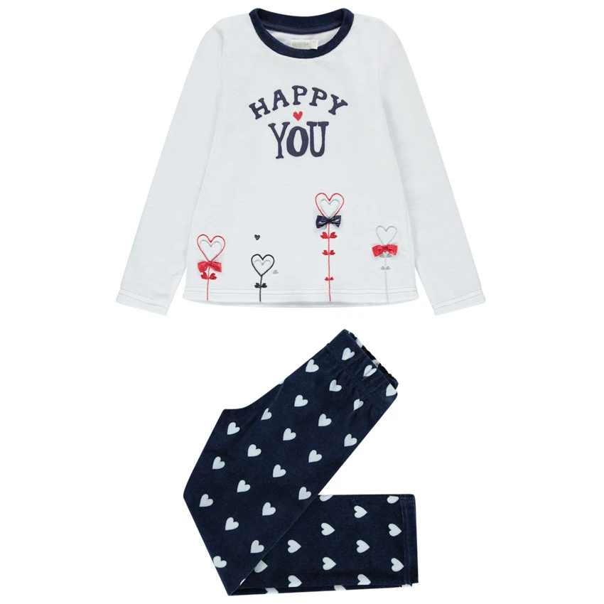 Haut de pyjama en velours. Encolure ronde contrastée. Inscription printée devant avec broderies et petits noeuds.