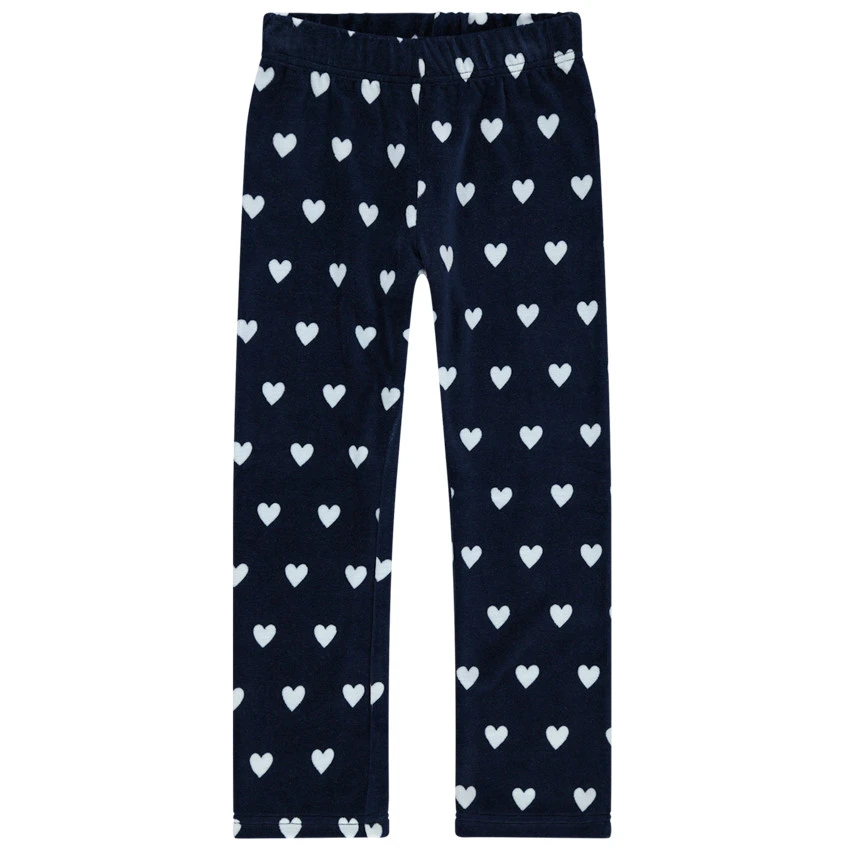 Pantalon en velours imprimé coeurs. Taille élastiquée.