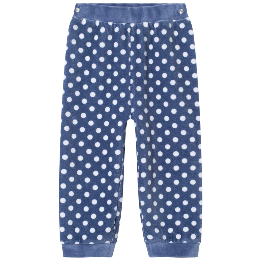 Pantalon en velours à pois all-over. Taille élastiquée avec pressions pour le relier avec le haut.