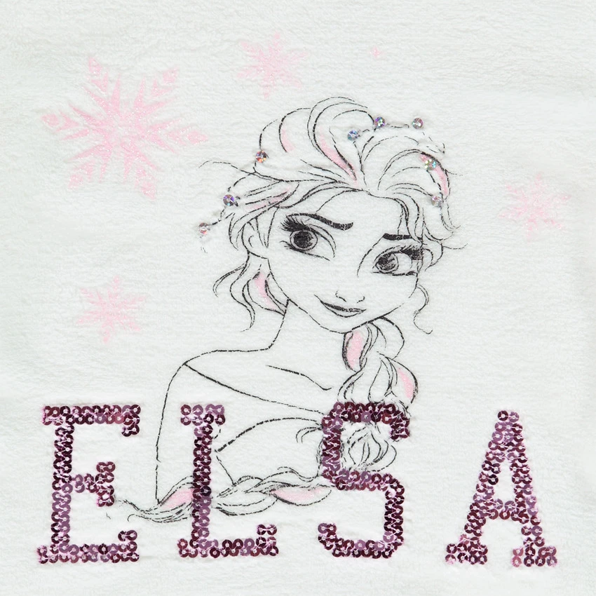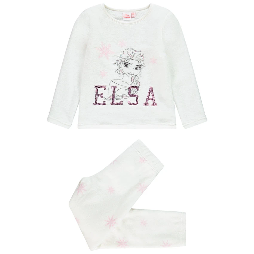 Pyjama en velours pour enfant fille. Col rond en maille extensible. Print Elsa Reine des neiges avec sequins violets.Â