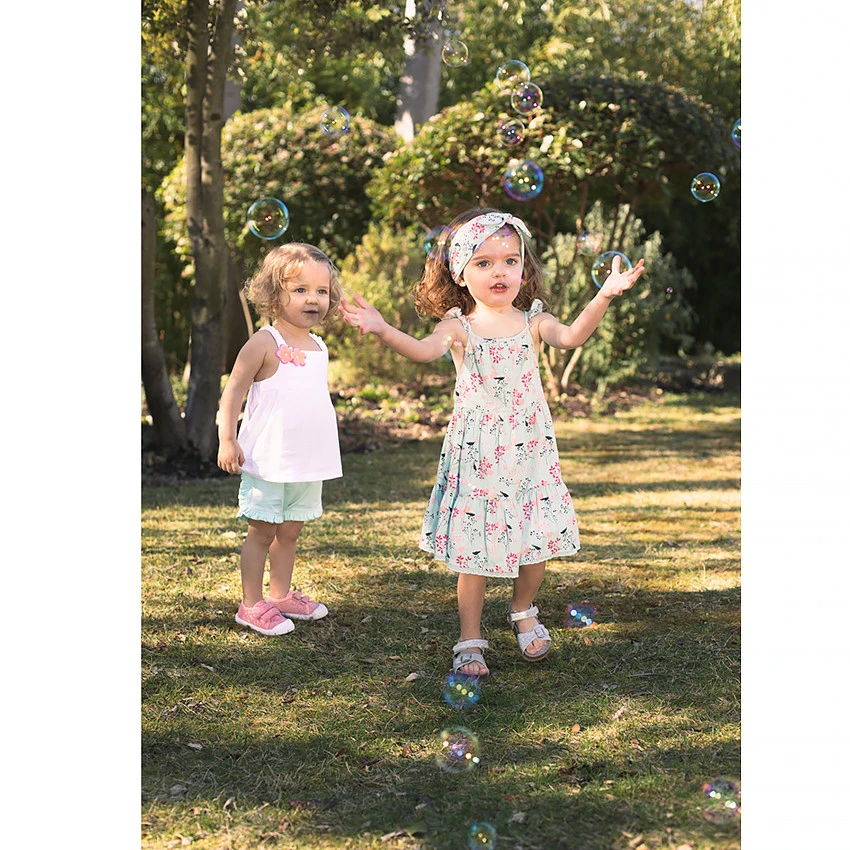 Robe à bretelles volantées. Ouverture boutonnée sur le devant. Jupe volantée. Imprimé fleuri all-over. Bretelles croisées dans le dos et volantées.
