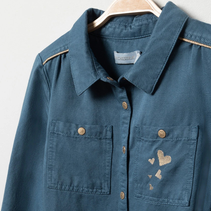 Robe chemise manches longues. Lyocel : fibre cellulosique Ă base de bois. Cette structure offre une Ă©vacuation optimale de l’humiditĂ© pour le bien-ĂȘtre de la peau. Col chemise. Biais sur les Ă©paules. Ouverture pressionnĂ©e devant pour faciliter l’habillement. 2 poches plaquĂ©es sur la poitrine avec coeurs brodĂ©s. Taille Ă passants avec ceinture Ă pois Ă nouer. Manches rĂ©tractables.