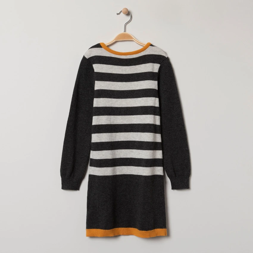 Robe en tricot manches longues. Rayures jacquard. Minnie en sequins magiques. Finitions en bord-cĂŽte.Â