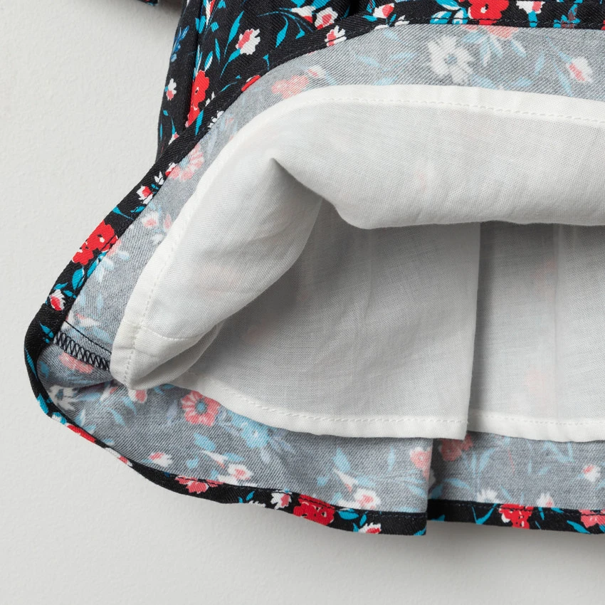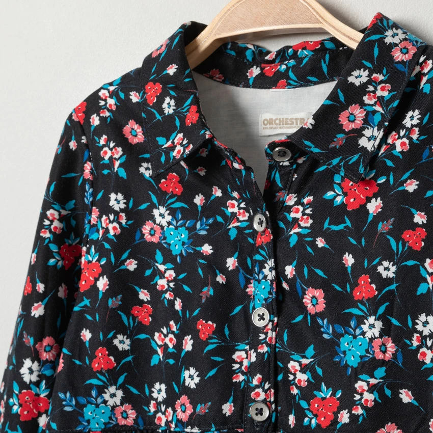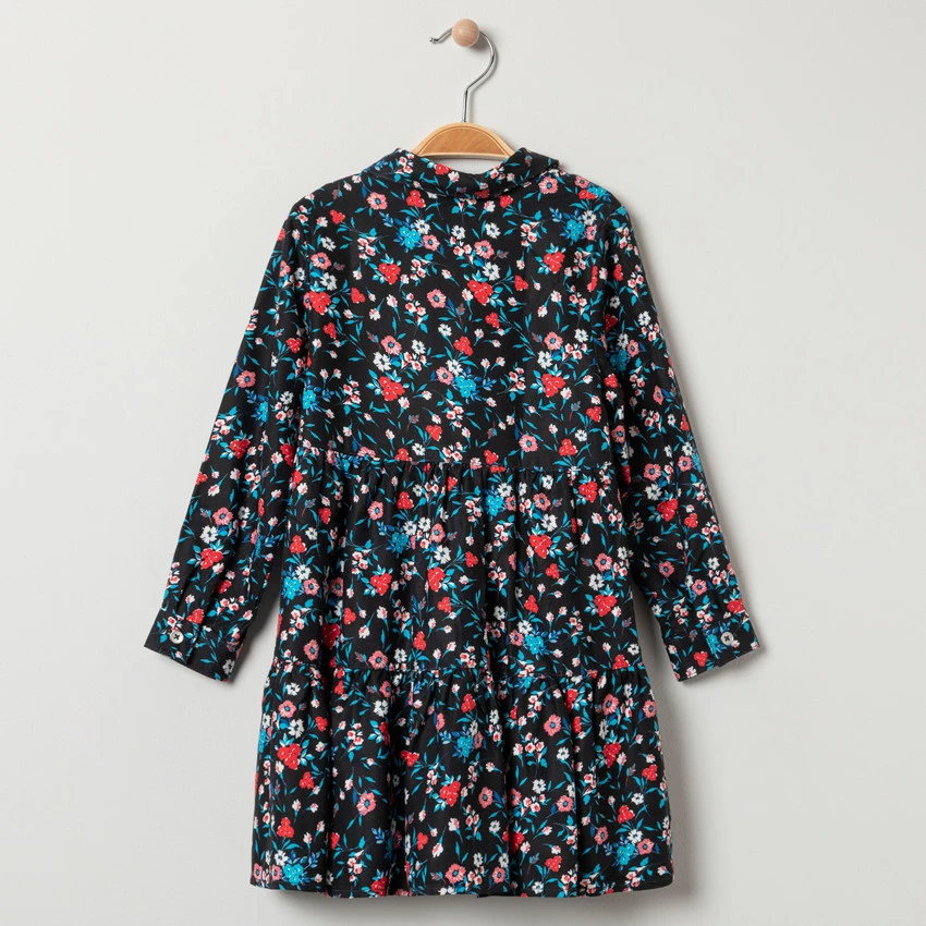 Robe manches longues à imprimé floral all-over. Col avec ouverture boutonnée sur le devant. Bas de la robe volanté avec doublure intégrée.