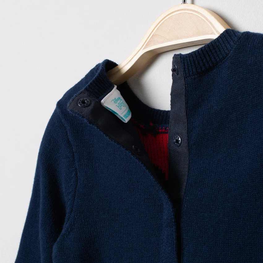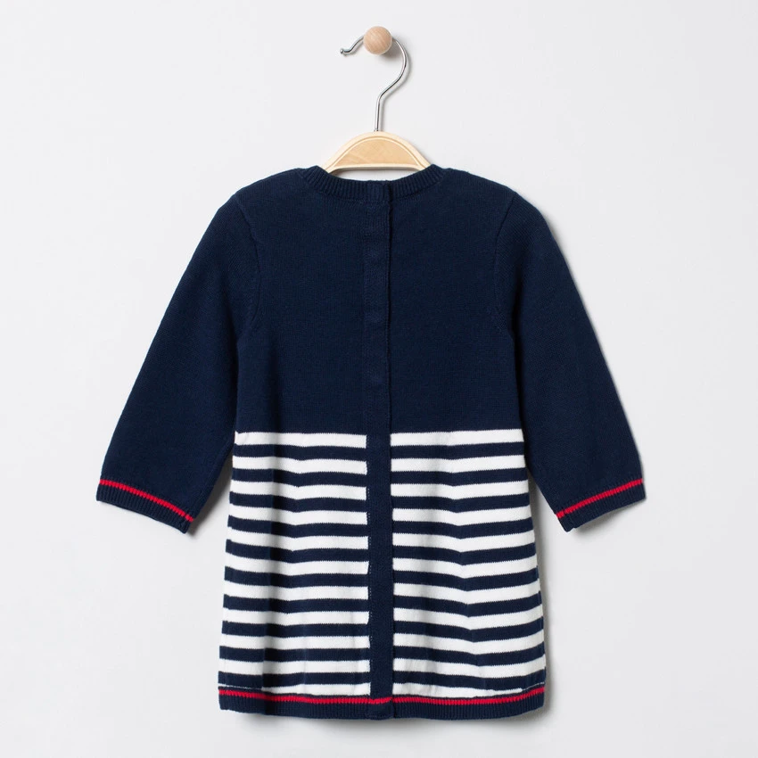 Robe manches longues en tricot. Motif Minnie sur le devant. Encolure ronde. Rayures sur le devant. Poignets et bas en bord-côte. Ouverture pressionnée dans le dos.