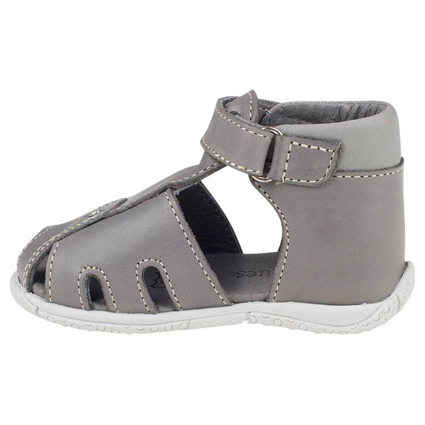 Salomés en cuir uni. Ouverture par scratch sur le devant. Bourrelet renforcé au col pour un meilleur maintien de la cheville. Surpiqûres contrastées. Semelle extérieure souple en caoutchouc pour favoriser la marche.