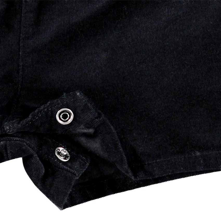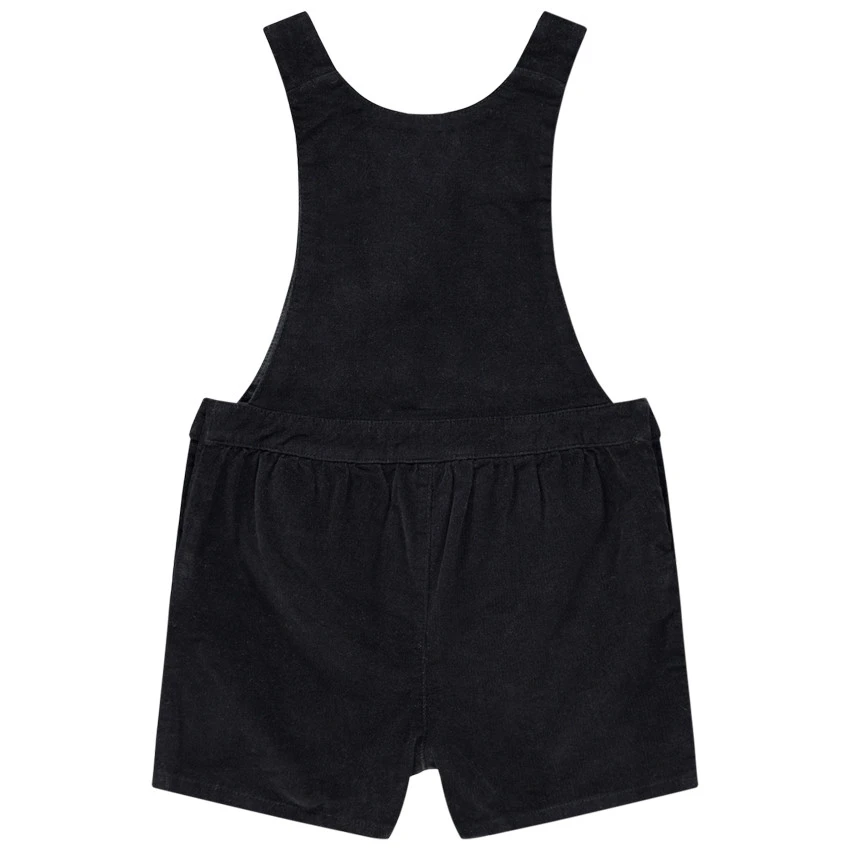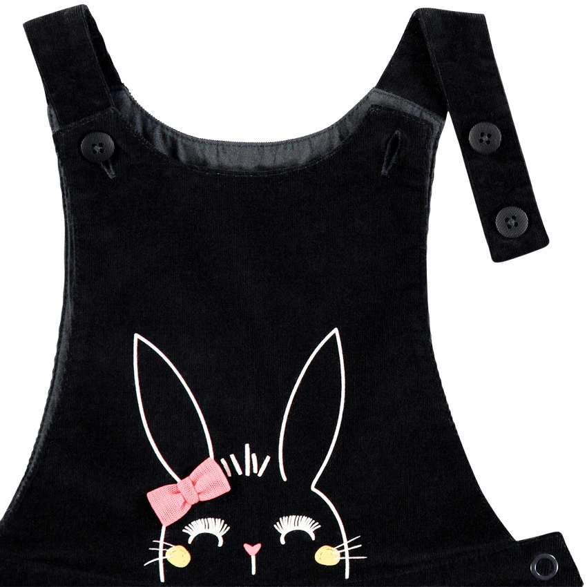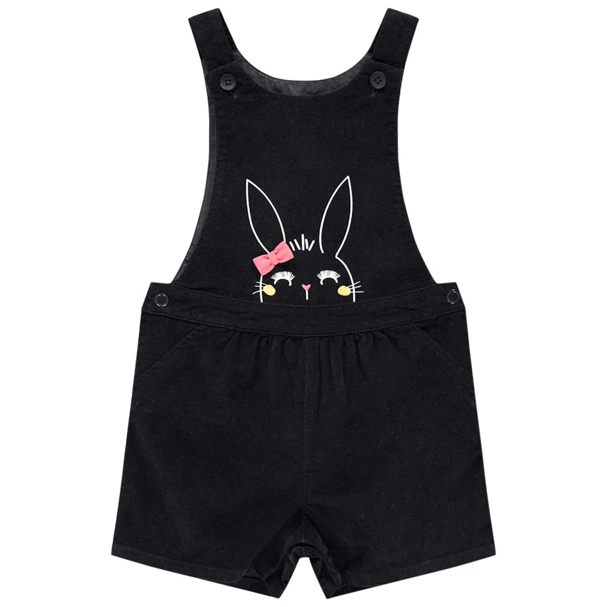 Salopette courte en velours. Bretelles ajustables. Lapin contrasté devant avec détails en relief. Taille boutonnée ajustable de l’intérieur. 2 poches italiennes devant.