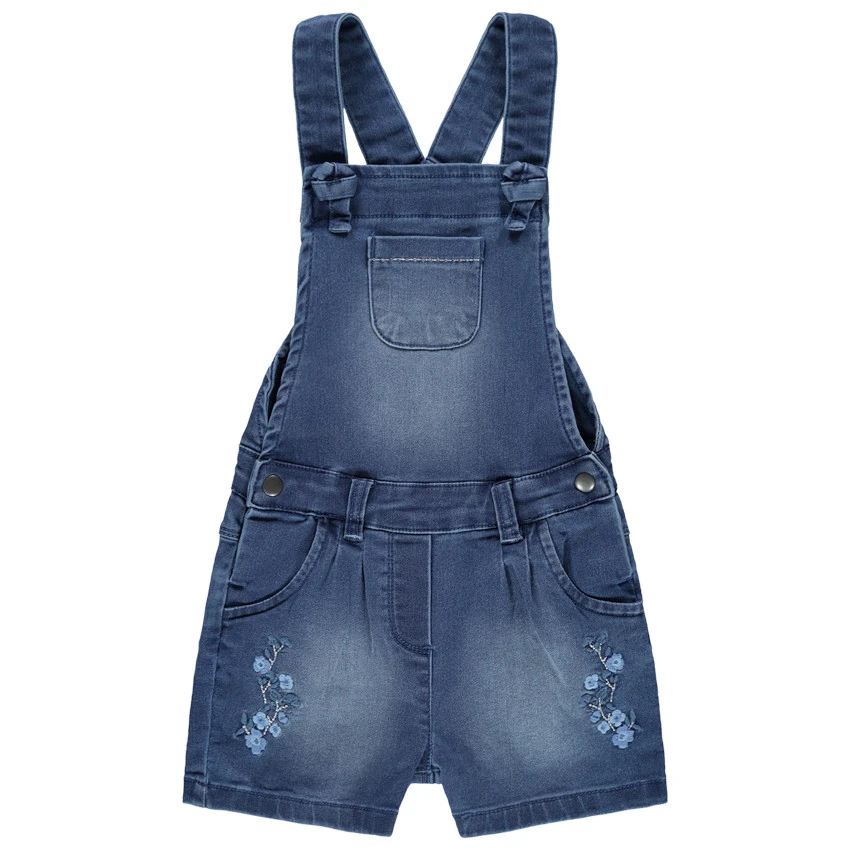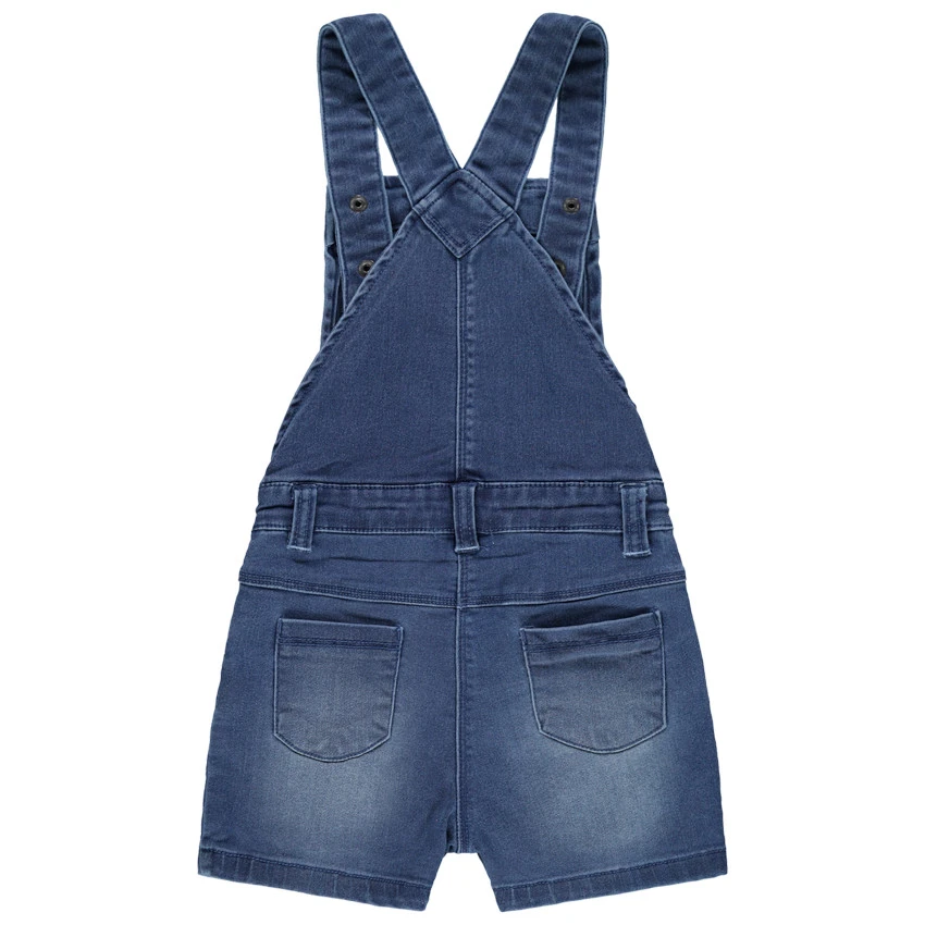 Salopette en jean effet used. Bretelles ajustables. Poche plaquée devant. Ouverture pressionnées sur les côtés. Taille à passants. 2 poches cavalières et broderies sur le devant. 2 poches plaquées au dos.