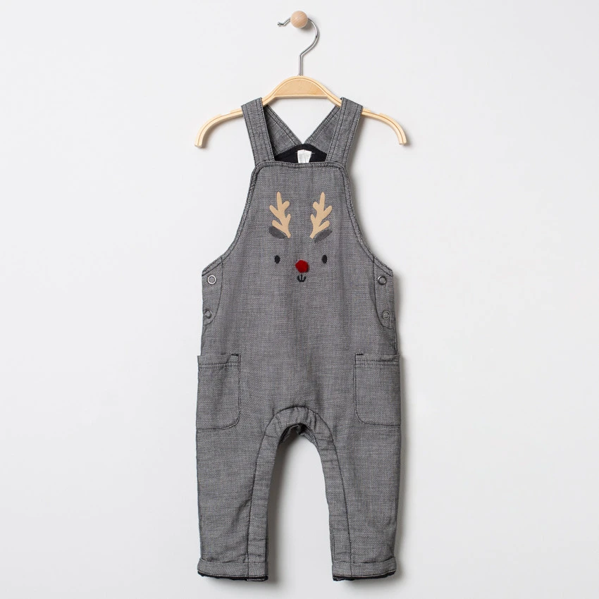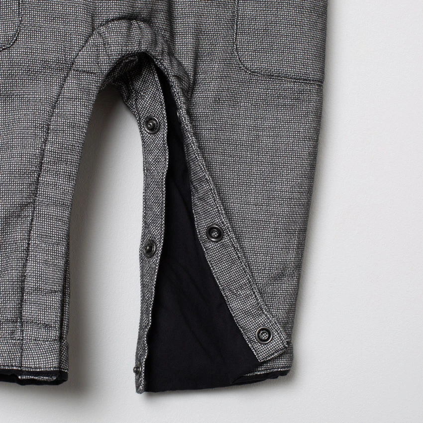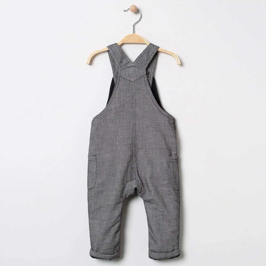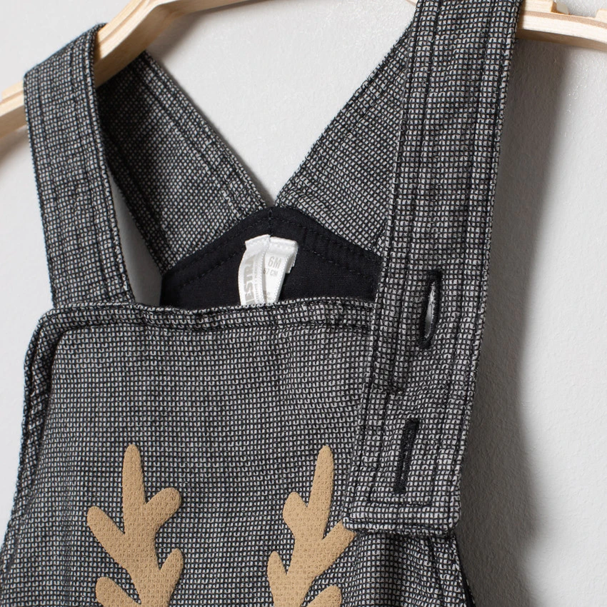Salopette chinée. Bretelles ajustables. Elan printé avec détails brodés. Doublure en jersey. Ouverture pressionnée sur le côté. 2 poches plaquées sur les jambes. Entrejambe pressionné.