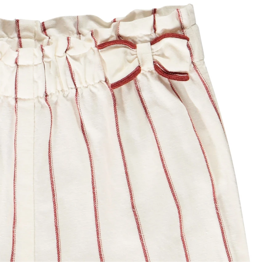 Short à rayures. Taille élastiquée avec noeud cousu.