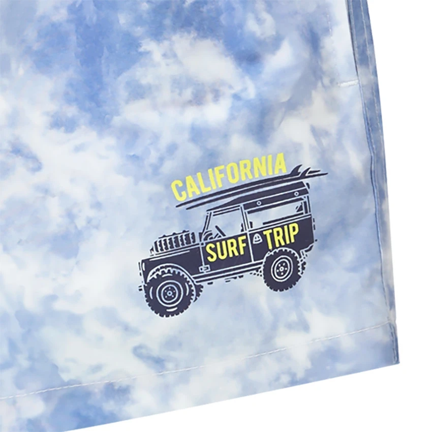 Short de bain avec print 4×4. Taille élastiquée. Cordon de serrage. Doublure effet 2 en 1 printée. Imprimé nuages all-over.
