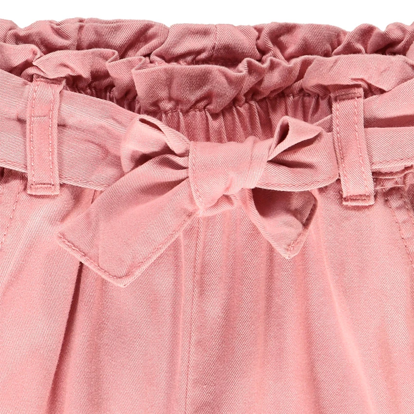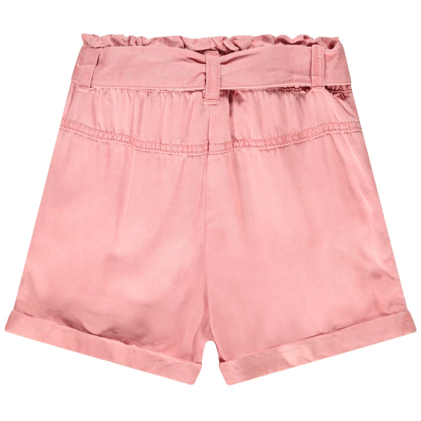 Short effet jean. Taille élastiquée. Passants pour ceinture. Ceinture à nouer à la taille. Deux poches cavalières sur le devant. Coeurs dorés brodés au niveau de la cuisse. Revers fixes en bas du short.