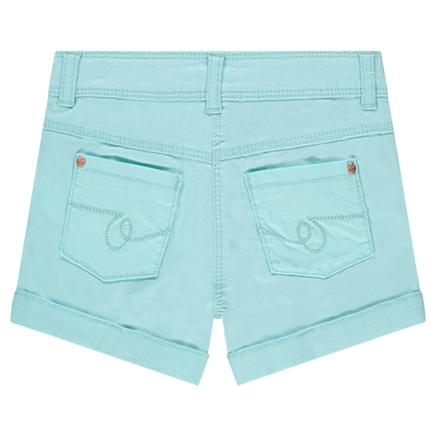 Short en coton fantaisie uni. Taille ajustable de l’intérieur par élastique et boutons. Ceinture à passants avec bouton et braguette zippée. 2 poches cavalières et 1 poche ticket devant. Détails rose gold. 2 poches plaquées au dos.