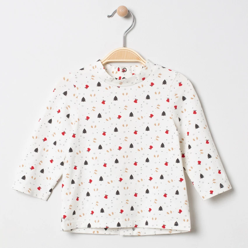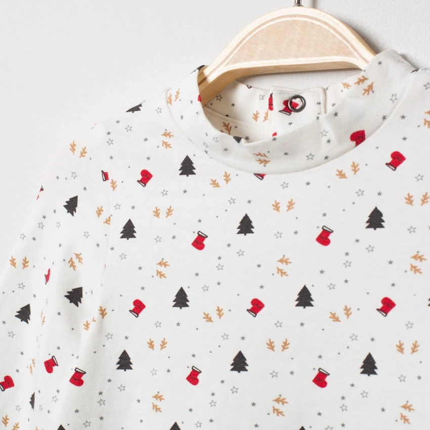 Sous-pull à imprimé esprit Noël all-over. Col cheminée. Ouverture pressionnée au dos.