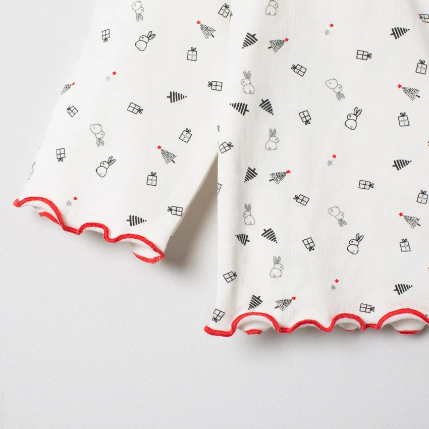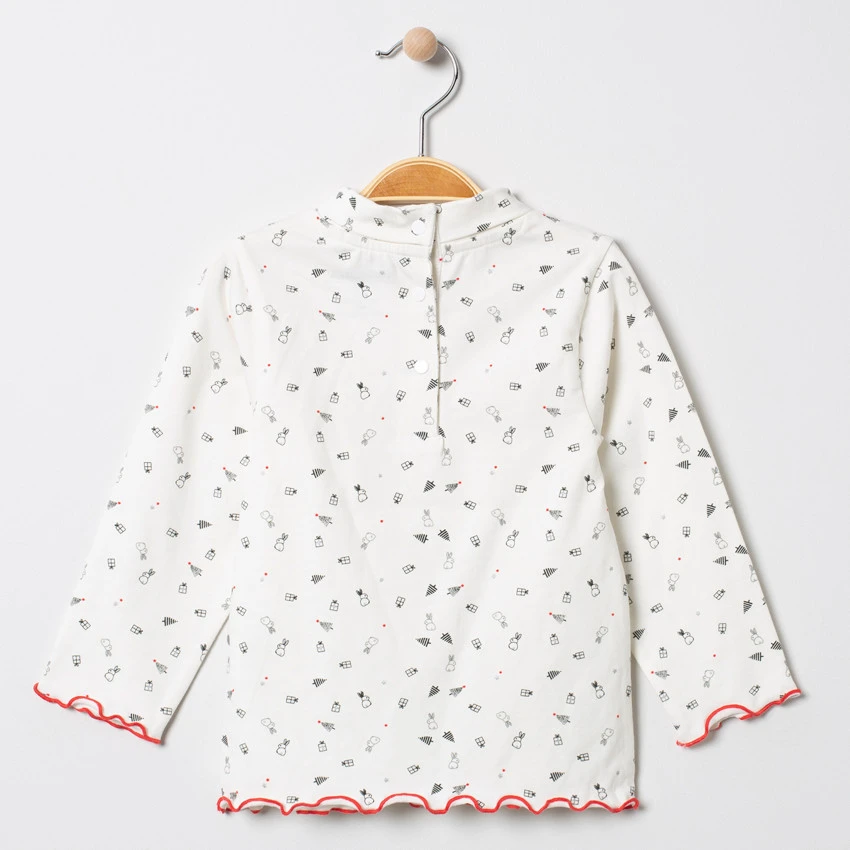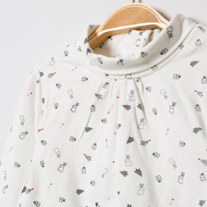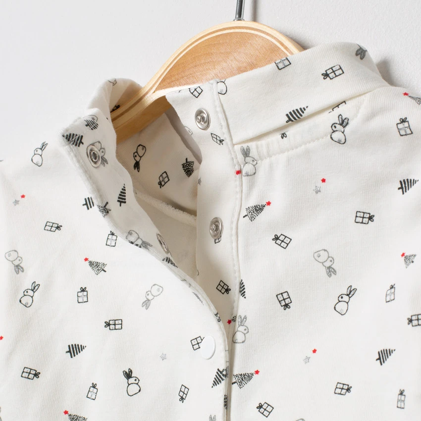 Sous-pull en coton issu de l’agriculture biologique imprimé all-over. Col cheminée. Finitions ondulées à liseré contrasté. Ouverture pressionnée au dos.