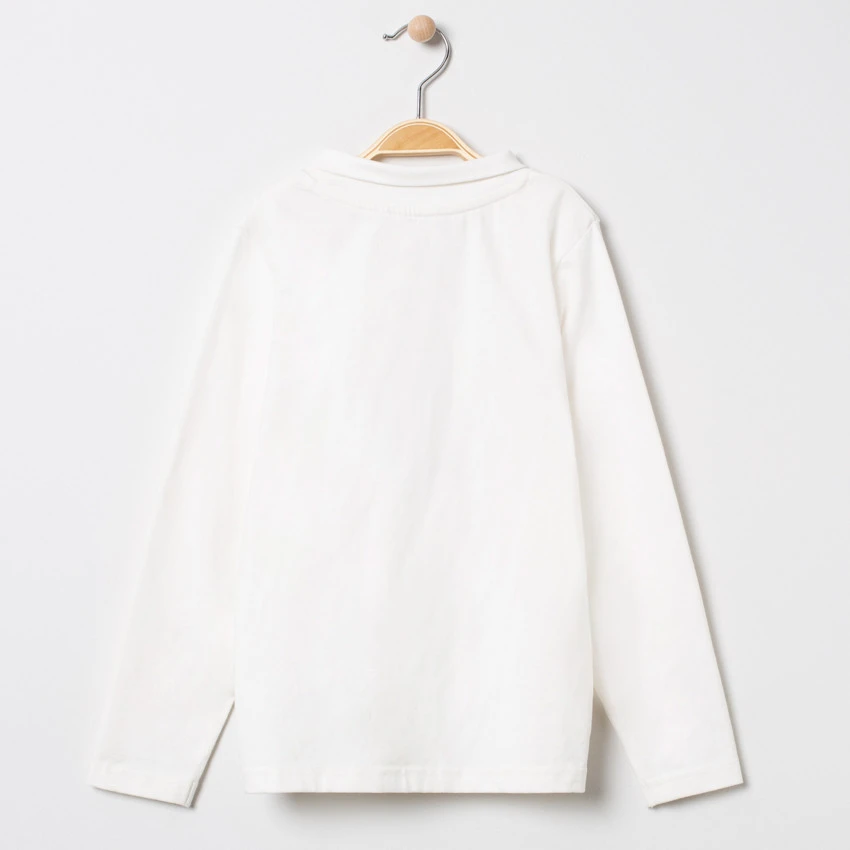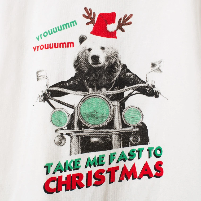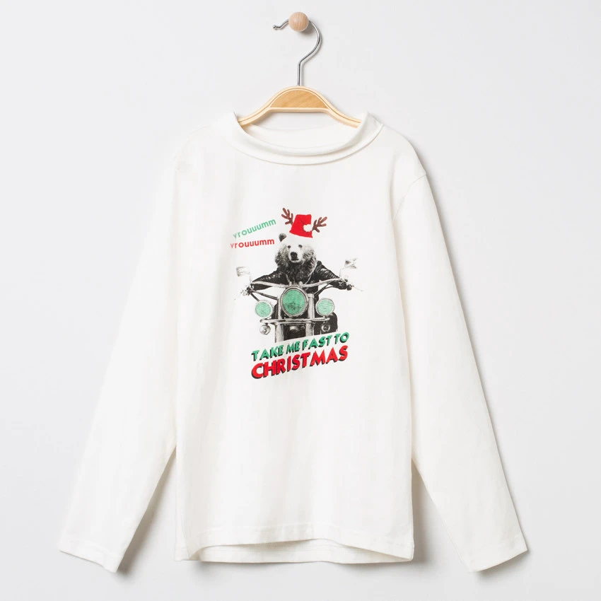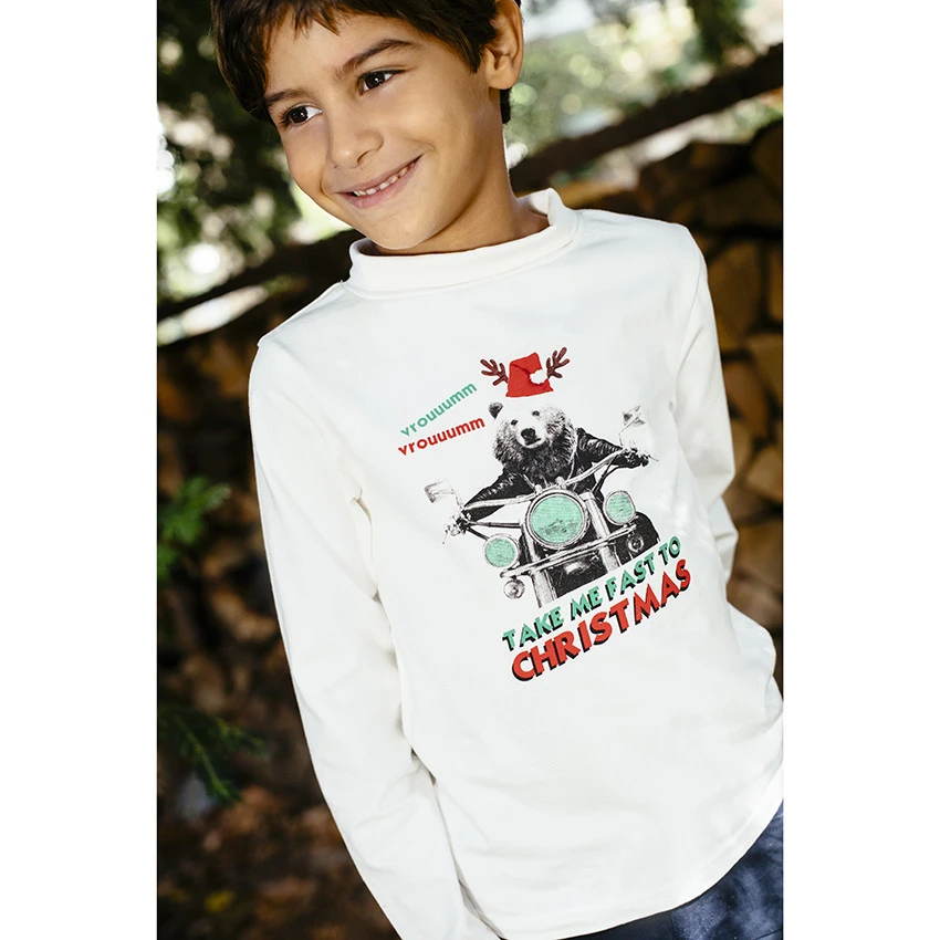 Sous-pull col cheminée. Coton issu de l’agriculture biologique. Imprimé ours esprit Noël. Dos uni.