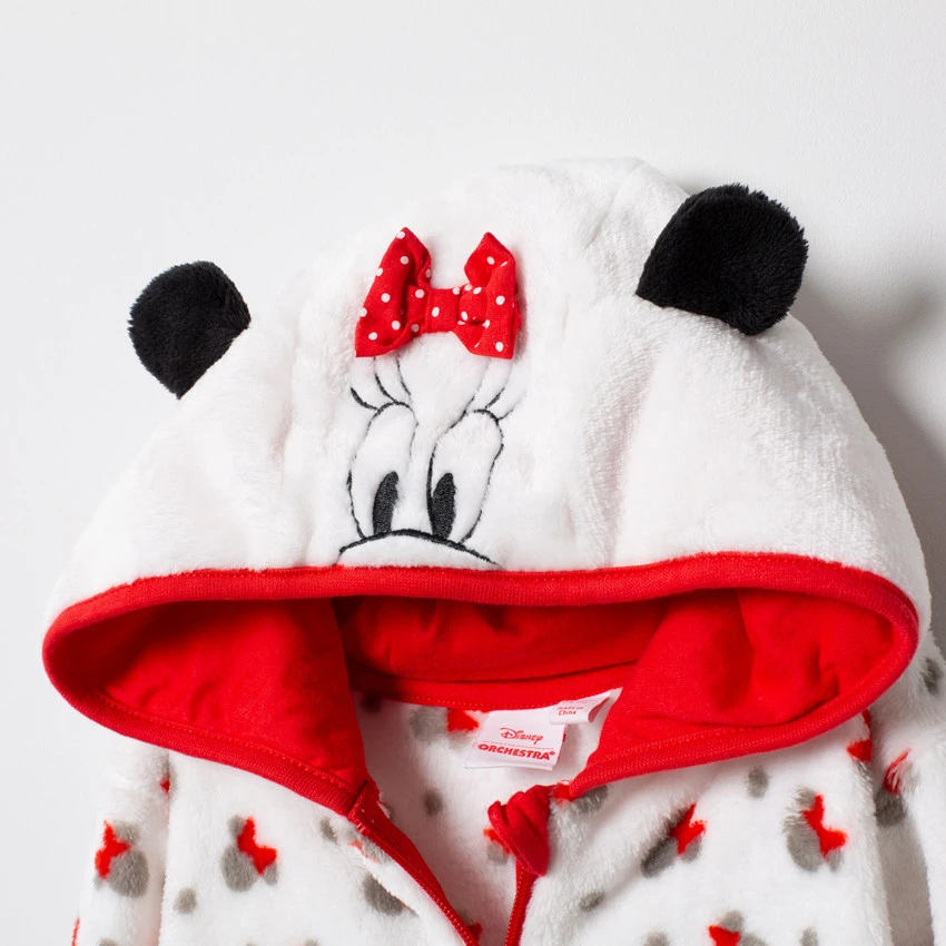 Surpyjama en sherpa à capuche. Détails brodés sur la capuche avec noeud de Minnie. Ouverture zippée sur le devant. Mickey imprimé all-over. Poignets et chevilles en bord-côte.