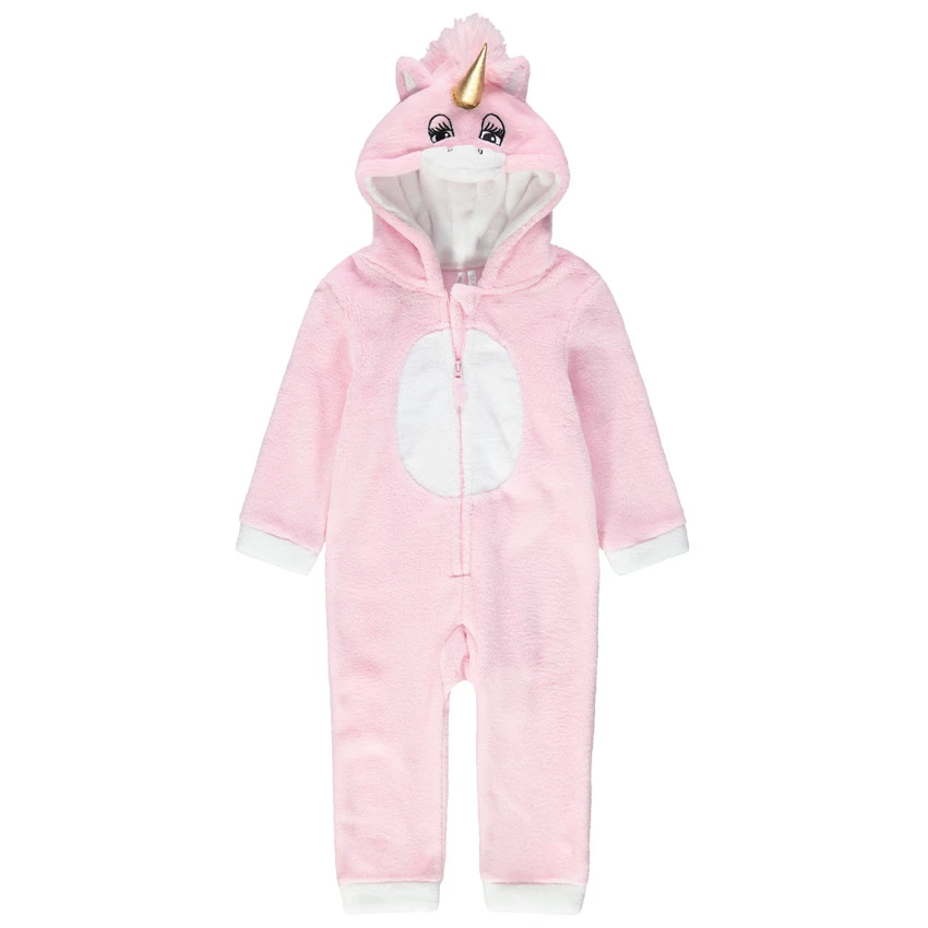 Surpyjama licorne en sherpa à capuche. Corne dorée et crinière en fausse fourrure. Détails brodés. Ouverture zippée devant.