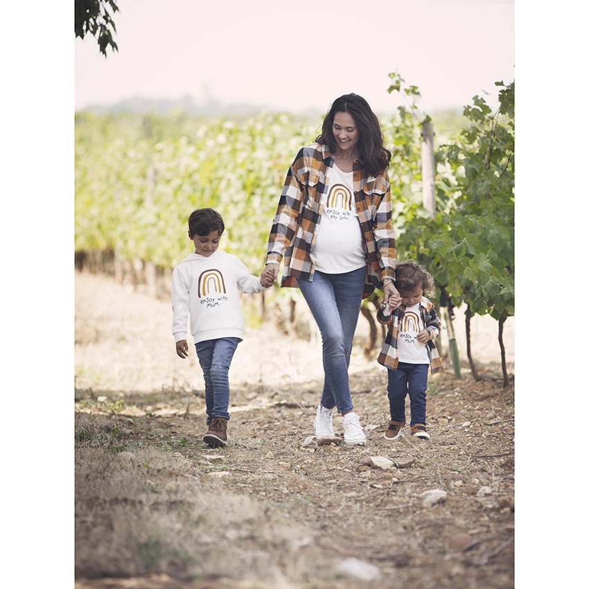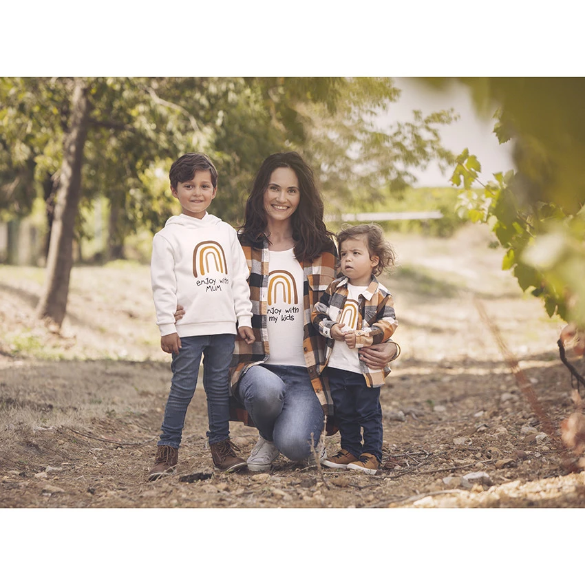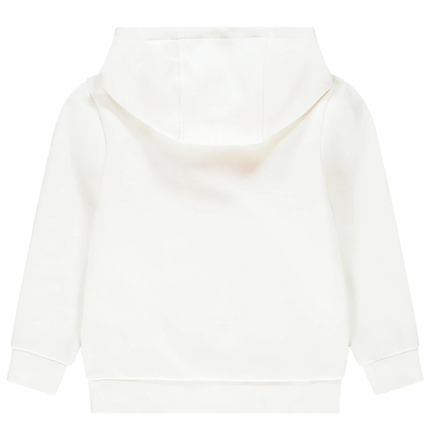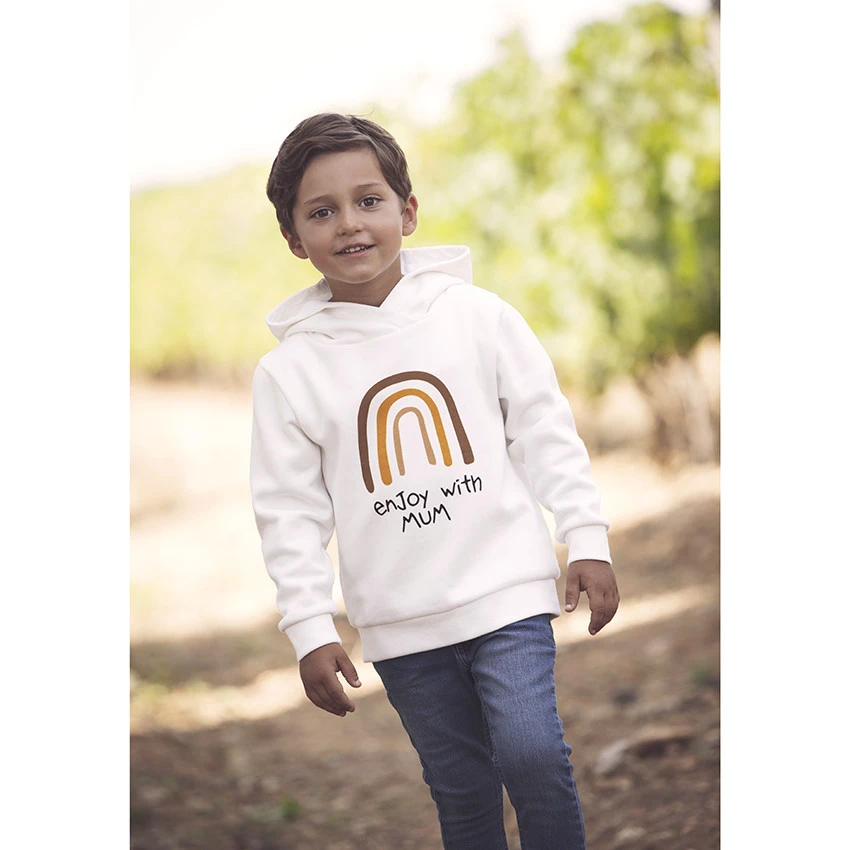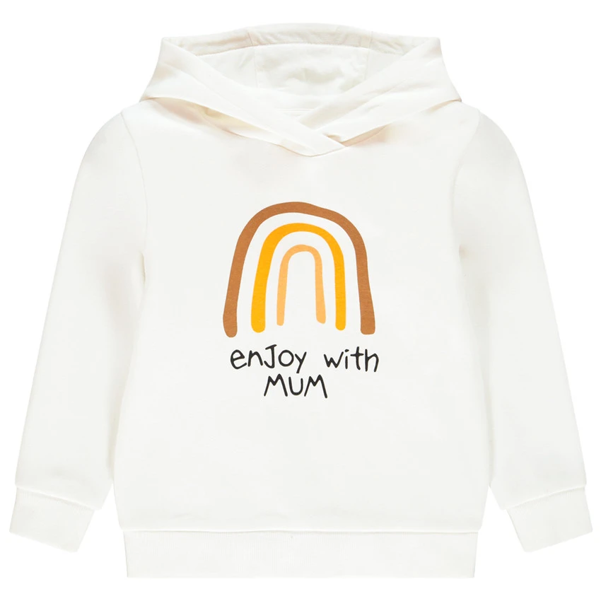 Sweat en molleton à capuche. Arc-en-ciel printé devant avec message. Poignets et base en maille extensible. Dos uni.