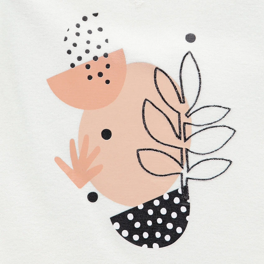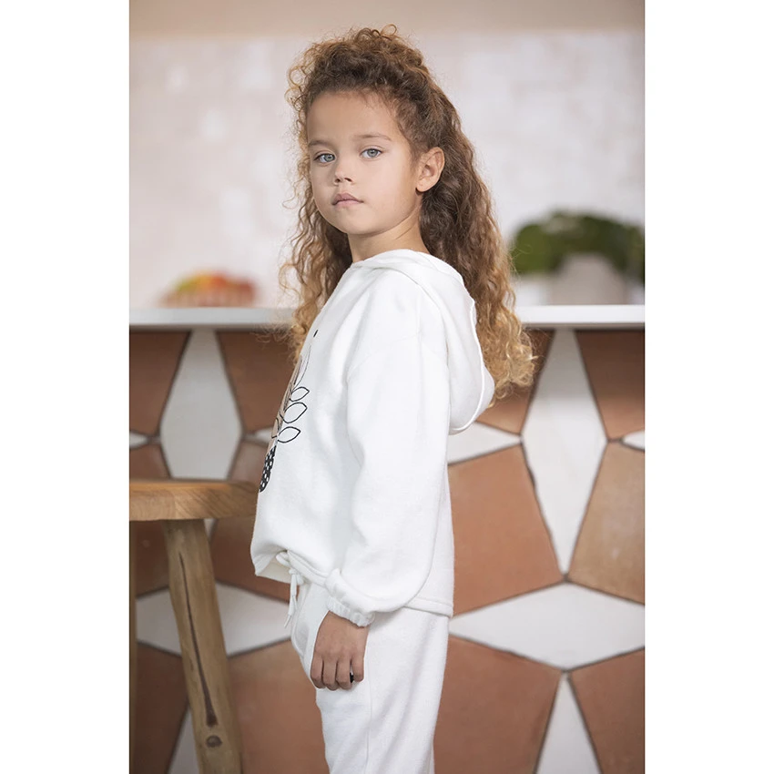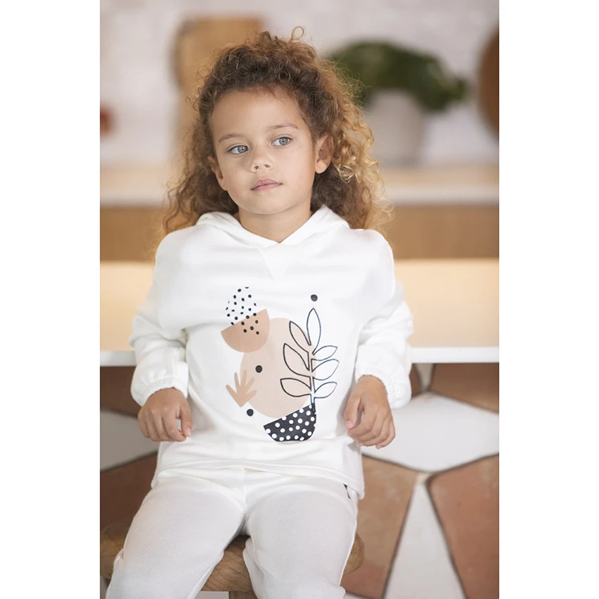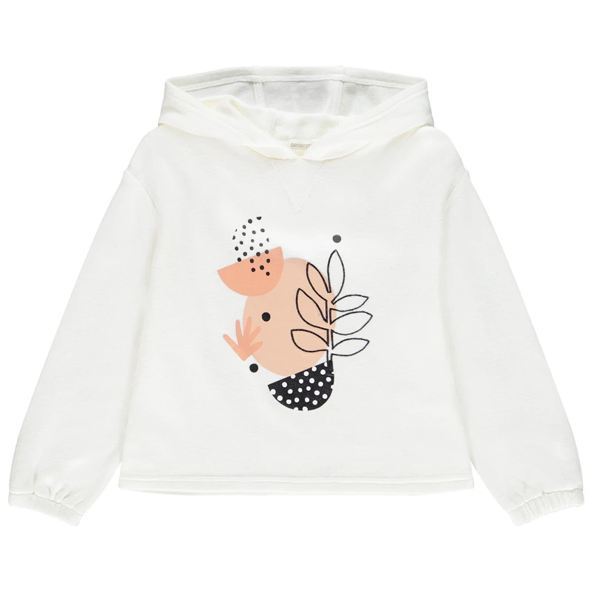Sweat en molleton à capuche. Imprimé graphique esprit végétal. Dos uni. Poignets élastiqués.