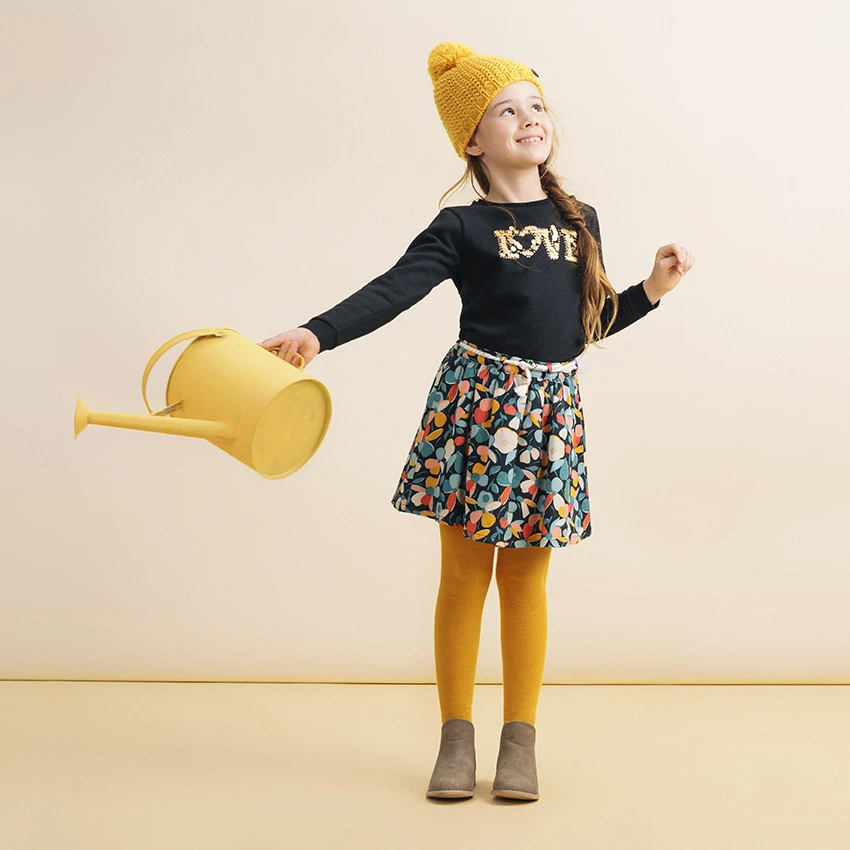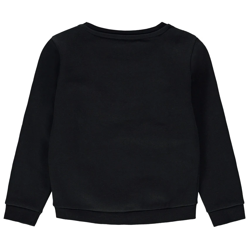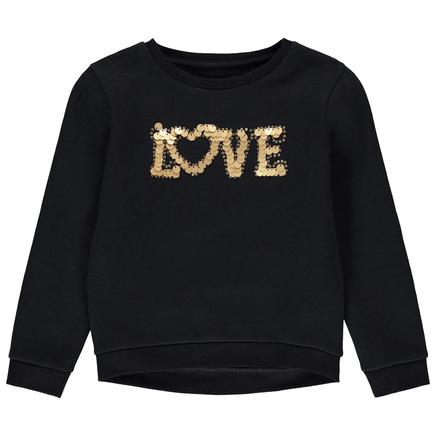 Sweat en molleton gratté. Encolure ronde en bord-côte. Inscription en sequins dorés. Poignets et base en bord-côte. Dos uni.