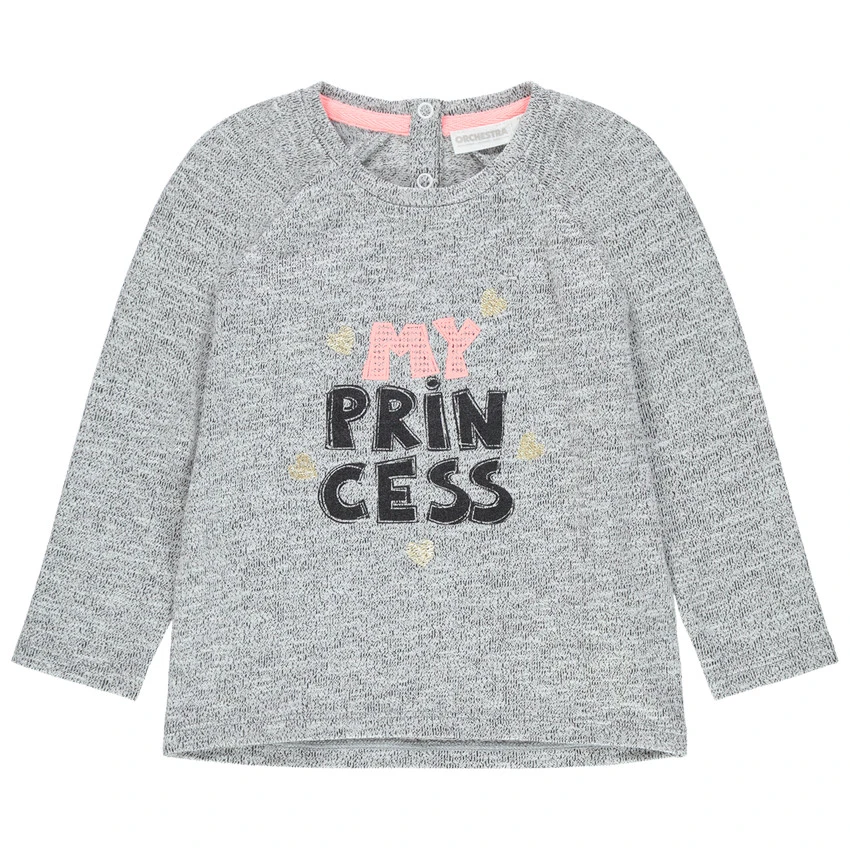 Sweat en molleton twisté. Encolure ronde en bord-côte. Inscription printée sur le devant. Ouverture pressionnée au dos.