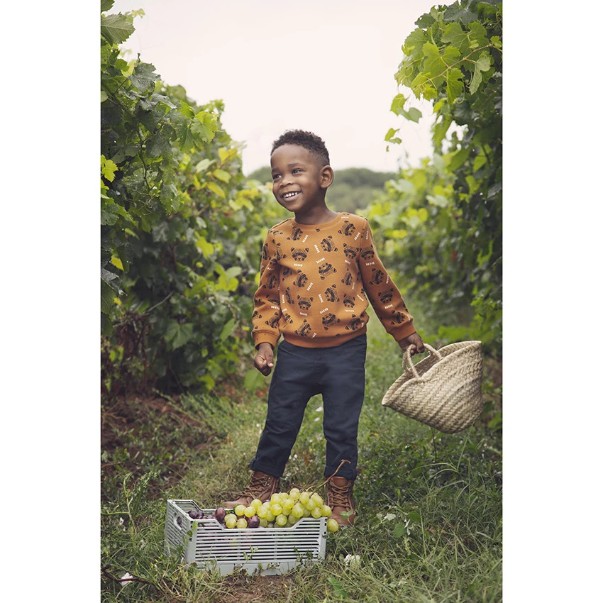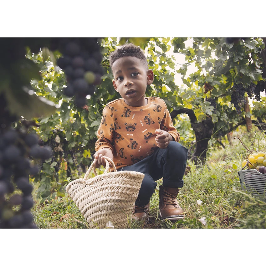 Sweat chaud en molleton contrecollé de velours pour bébé garçon. Col en maille extensible. Ouverture pressionnée au dos pour l’enfiler facilement. Poignets et base en bord-côte pour éviter toute déformation.