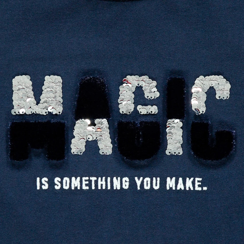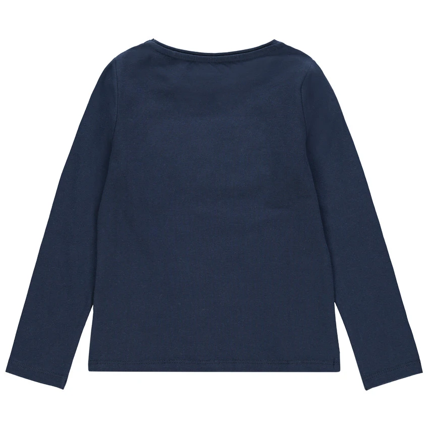 T-shirt manche longues uni. Encolure ronde en bord-côte. Inscription en sequins magiques et velours sur le devant. Dos uni.
