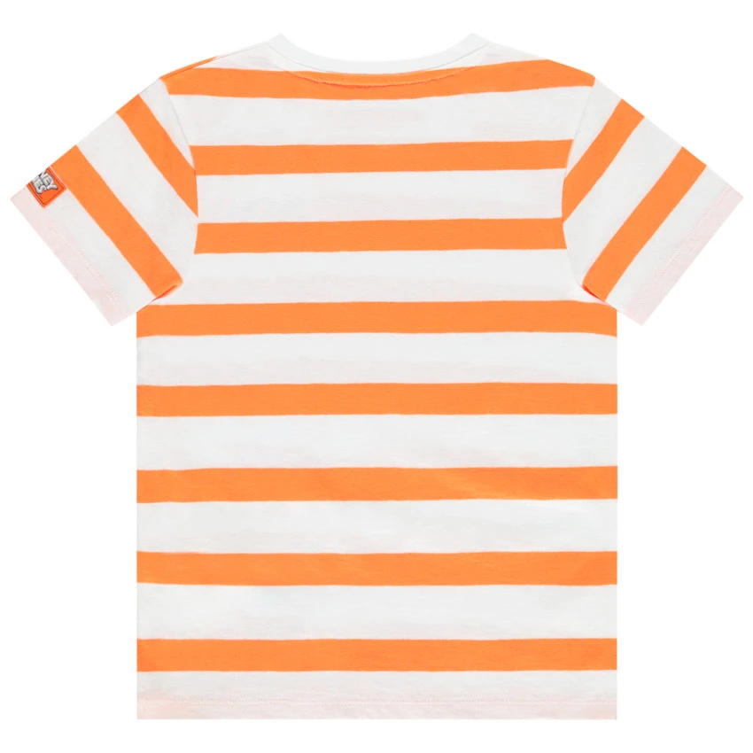 T-shirt manches courtes avec étiquette « Looney tunes ». Encolure ronde en bord côte. Rayures all-over. Broderie « Bad face » sur la poitrine. Print Grosminet (Looney Tunes) sur le devant.