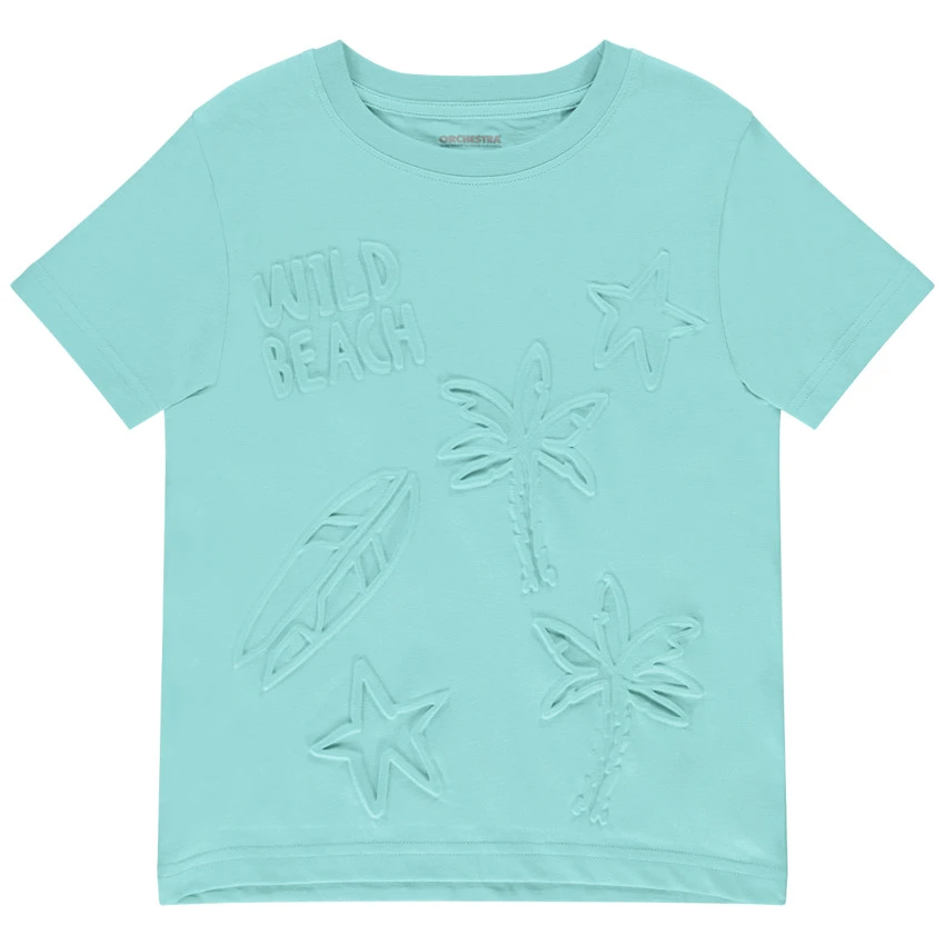 T-shirt manches courtes. Encolure ronde en bord côte. Visuels embossed ton sur ton sur le devant. Dos uni.
