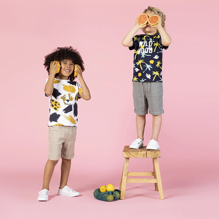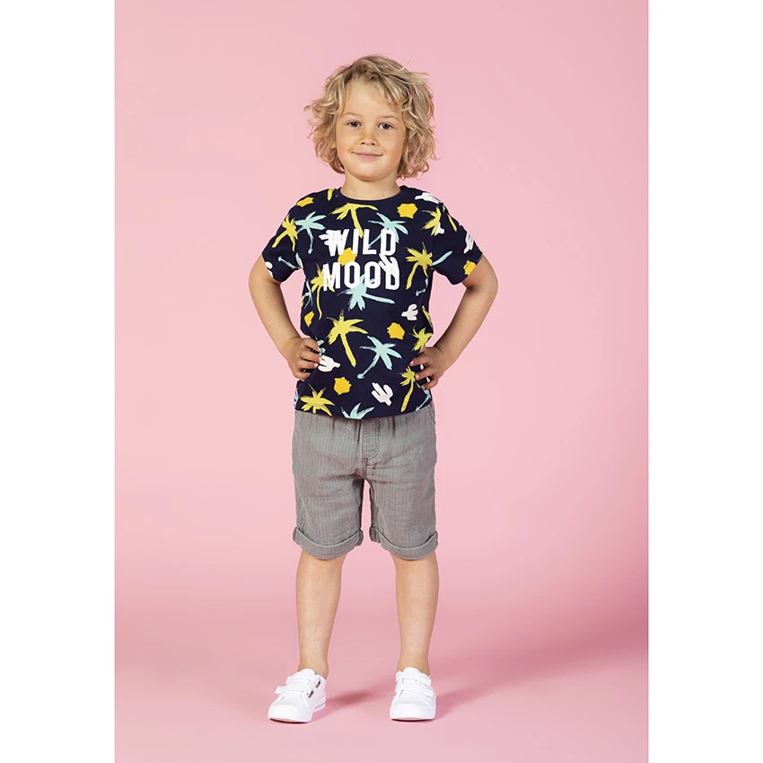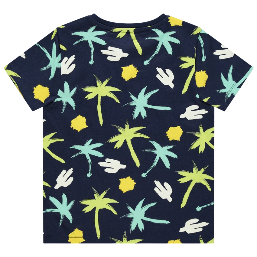 T-shirt manches courtes pour enfant garçon. Coton issu de l’agriculture biologique pour respecter la peau et l’environnement. Col en maille extensible. Palmiers contrastés imprimés sur l’intégralité du t-shirt.