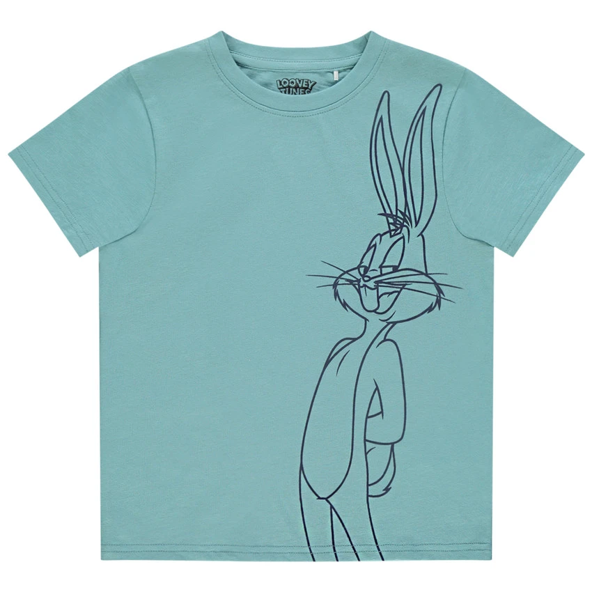 T-shirt manches courtes en coton uni. Encolure ronde en bord-cÎte. Print Bugs Bunny Looney Tunes devant. Dos uni.