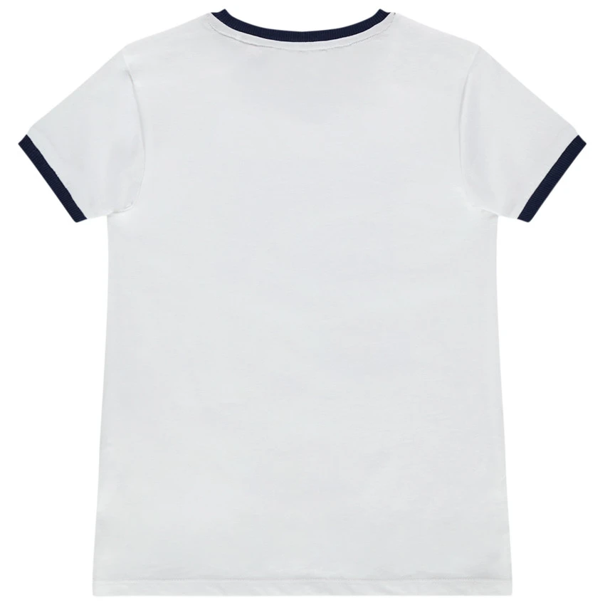 T-shirt manches courtes uni. Encolure ronde en bord-côte. Print fantaisie sur le devant. Dos uni.