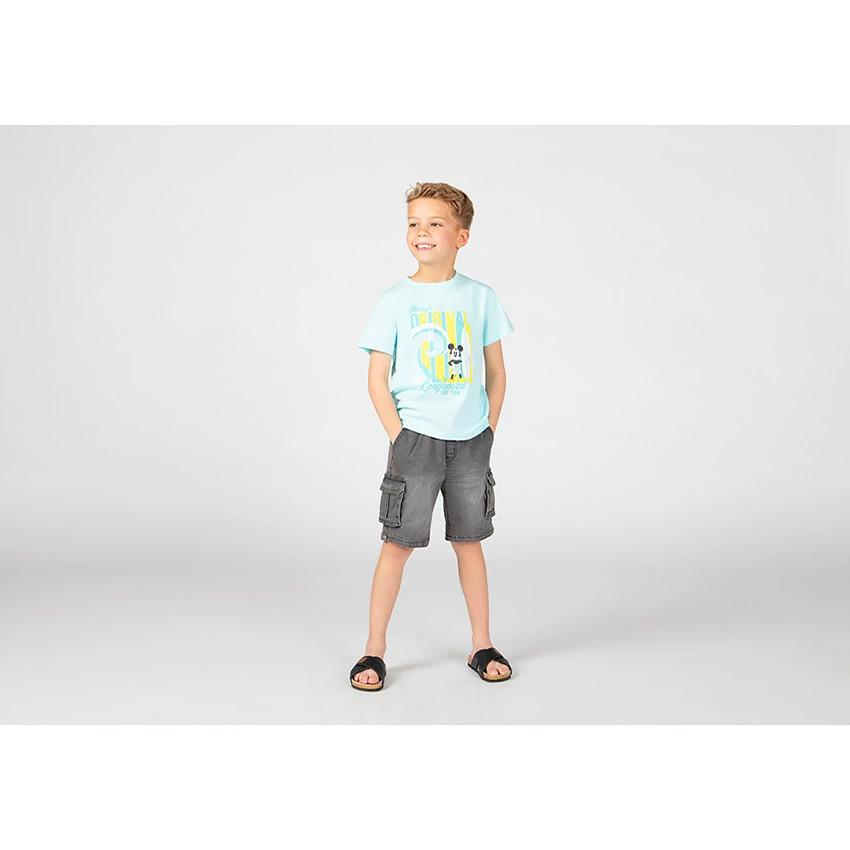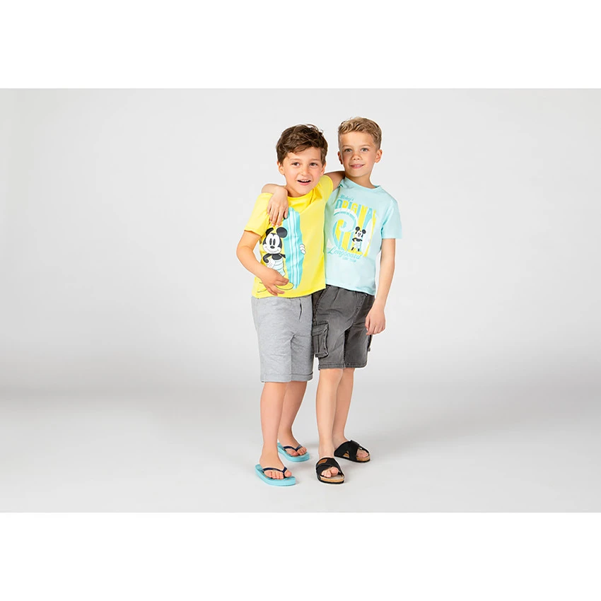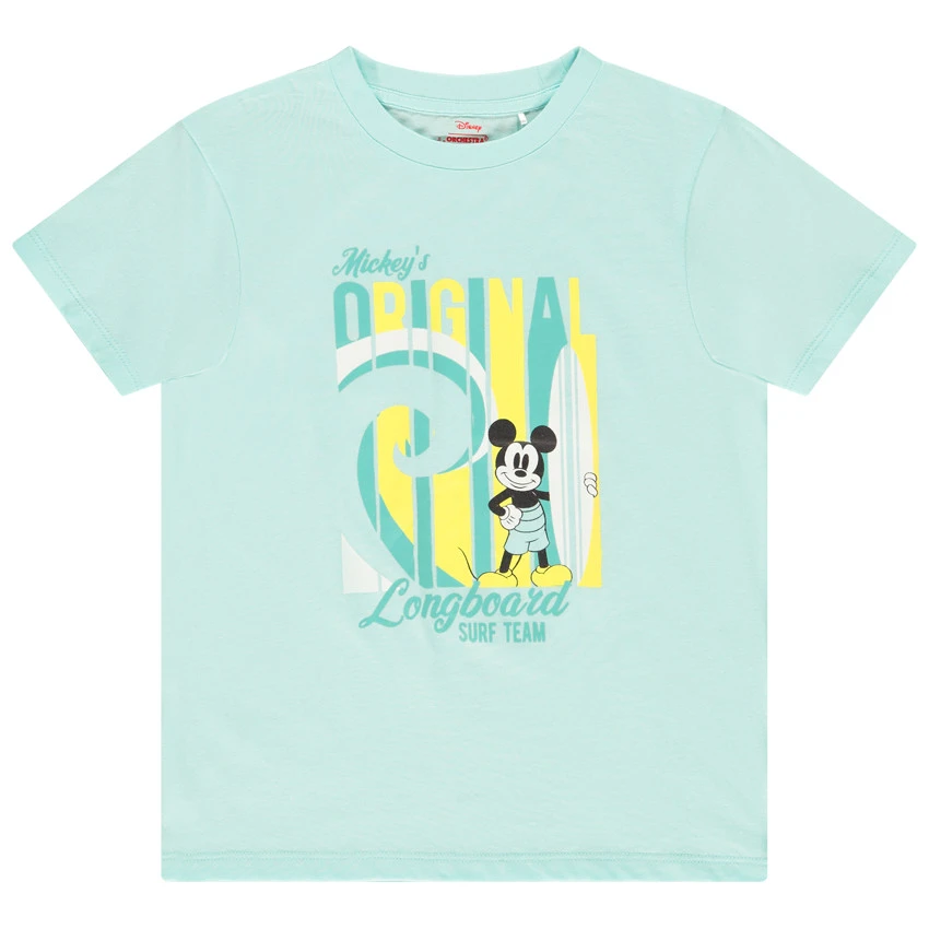 T-shirt manches courtes. Encolure ronde en bord côte. Print Mickey sur le devant. Dos uni.