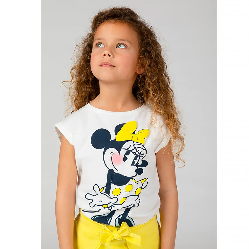 T-shirt manches courtes à revers fixes. Encolure ronde à bord côte. Print Minnie sur le devant. Print sur le derrière.