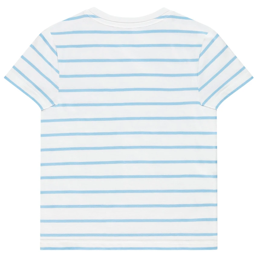 T-shirt manches courtes. Encolure ronde en bord côte. Rayures all-over. Print noir sur le devant avec texte fluo.