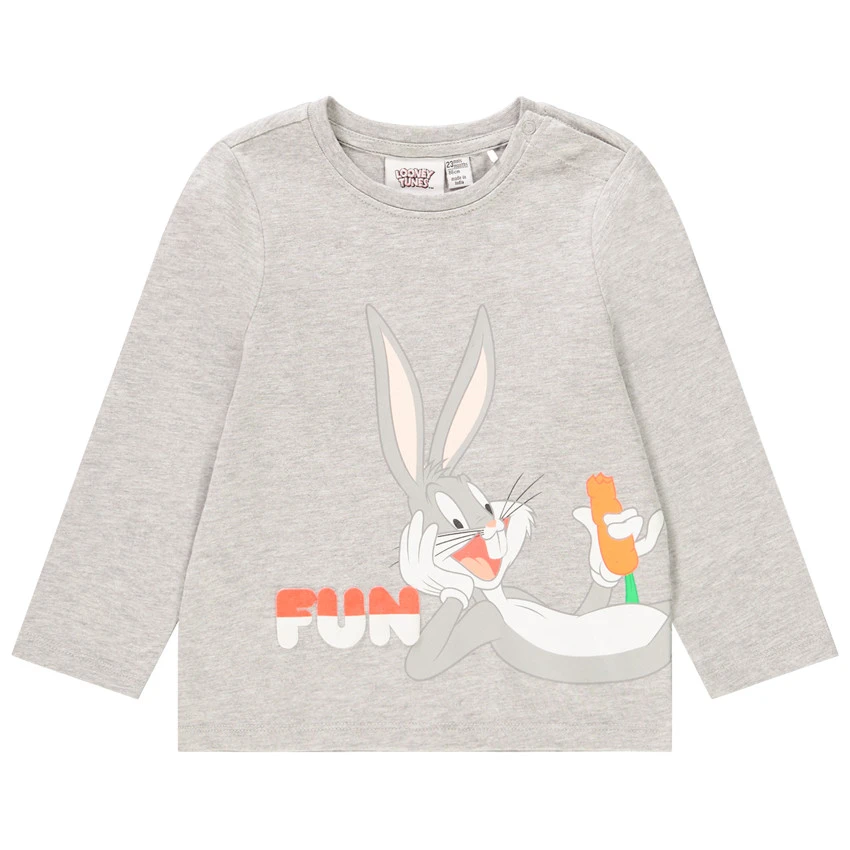 T-shirt manches longues. Col rond avec bouton. Print Bugs Bunny sur le devant. Dos uni.