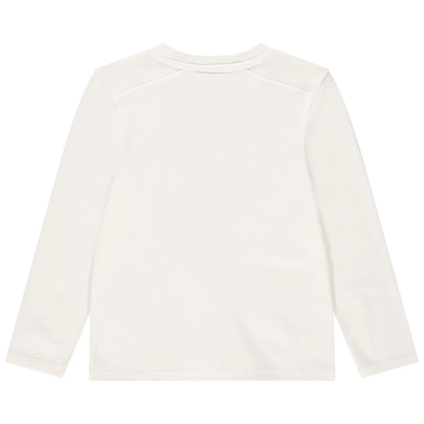 T-shirt manches longues en coton uni. Col rond en maille extensible pour l’enfiler facilement. Textes en relief sur le devant. Dos uni.